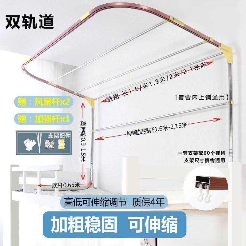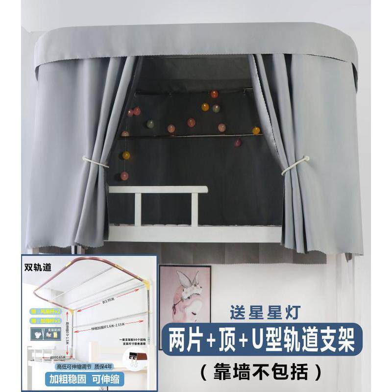 zq寝室u型轨道宿舍床帘上铺蚊帐一体式强遮光u型双轨道床帘伸缩支