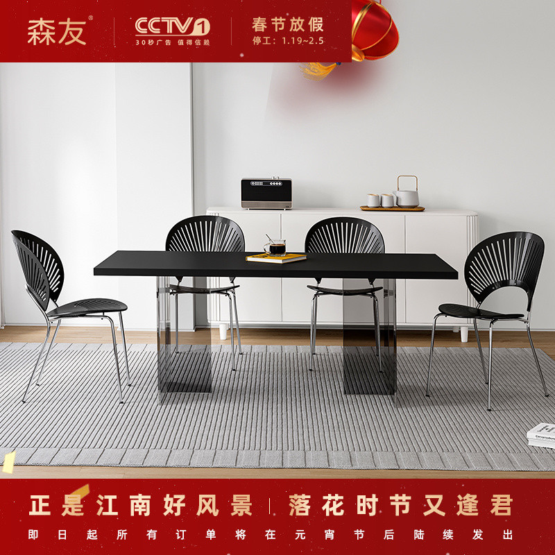 亚克力餐桌简约现代纯黑色岩板桌创意设计师寂风侘下挂岩板悬新品