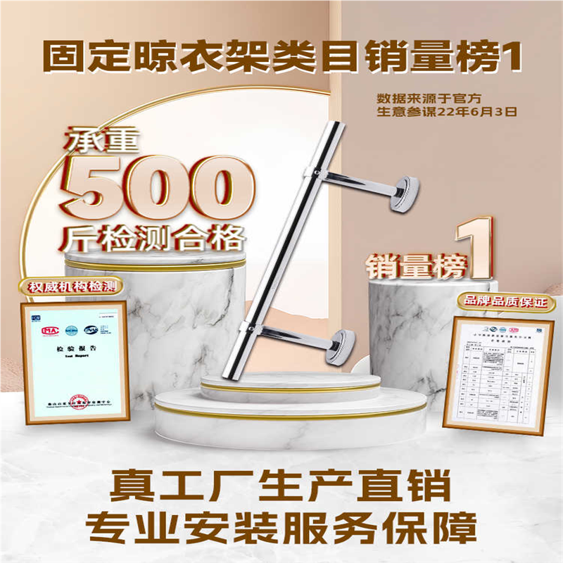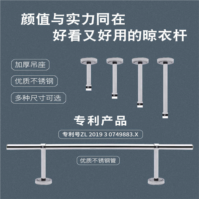 不锈钢固定式晾衣杆阳台顶装固定晾衣架单杆凉衣架墙上晒衣杆一根