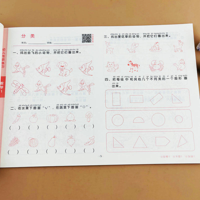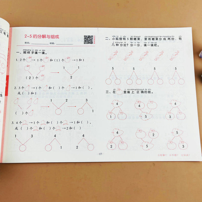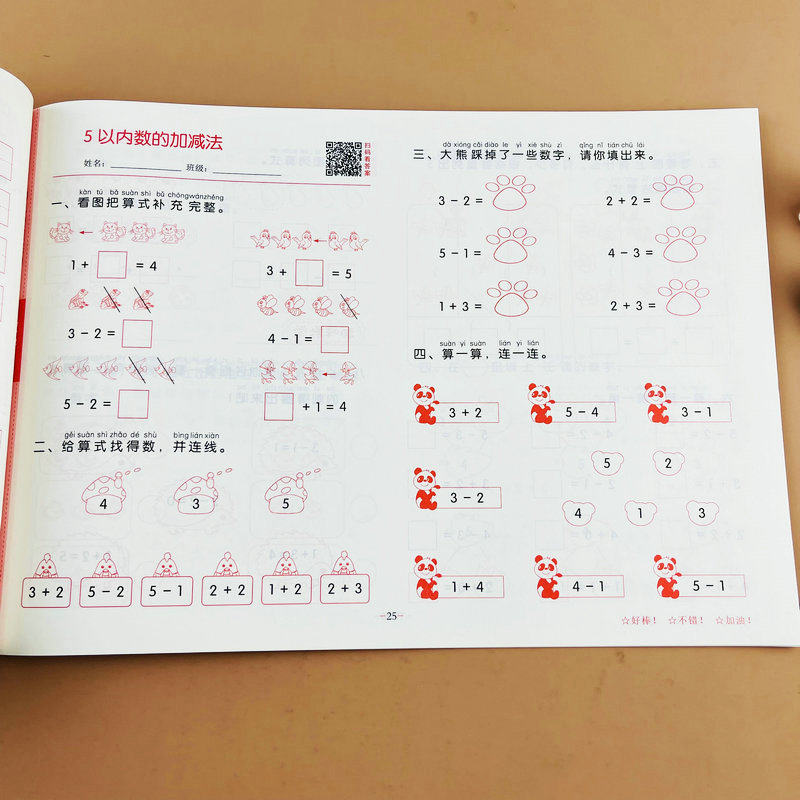 幼儿专项练习数学1 5以内数的加减法分解与组成比大小幼儿园升小学一年级测试题幼小衔接早教启蒙辅导专项训练试卷入学必备练习题