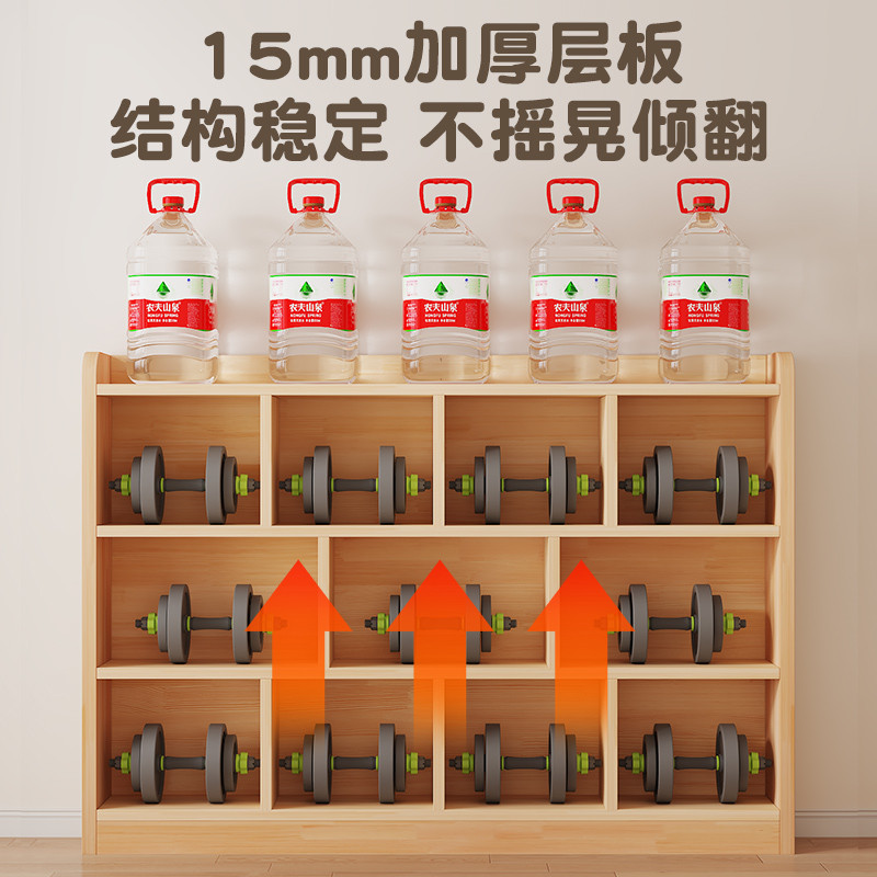 实木书架落地置物架简易家用儿童书柜一体靠墙格子柜矮柜置物柜