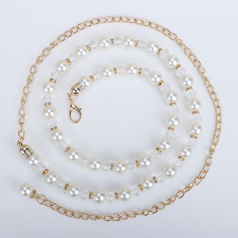 爆款韩版珍珠腰链女细腰带装饰连衣裙链条水钻流苏弹力松紧金属