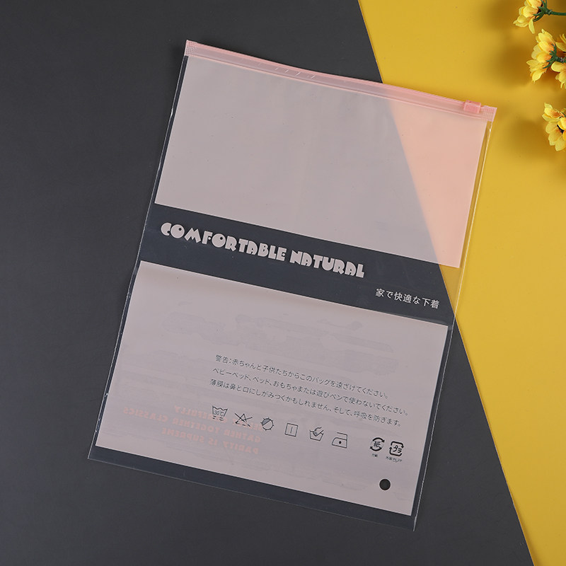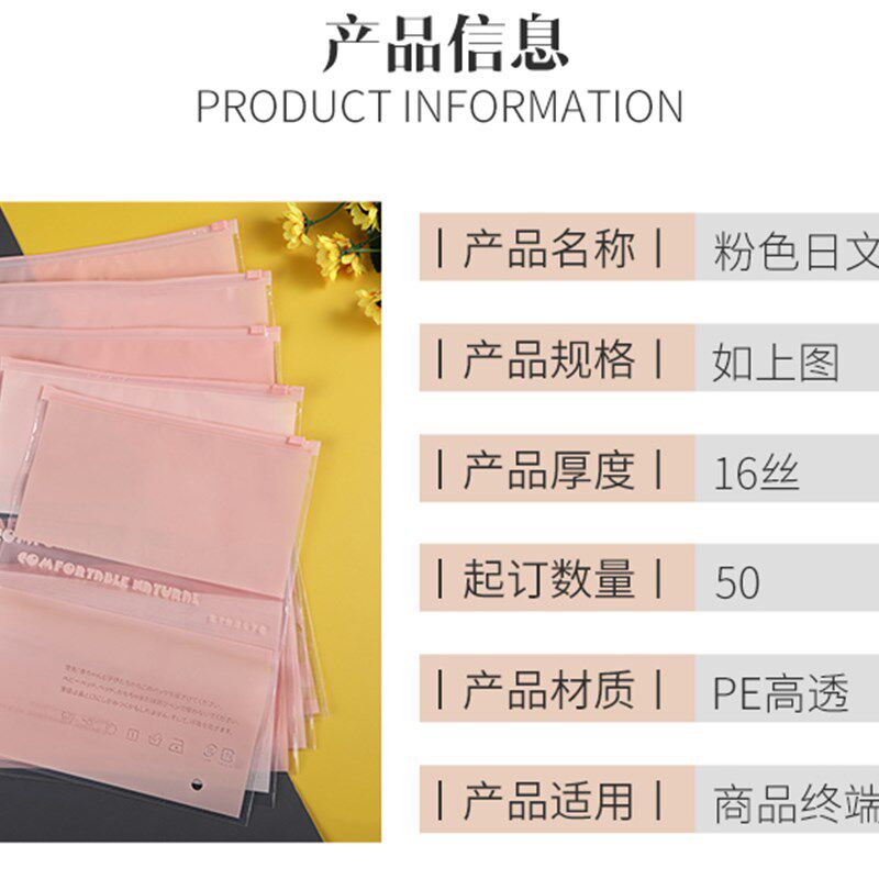 女士时尚半透明粉色日文服装包装袋 内衣袜子pe塑料拉链袋自封袋