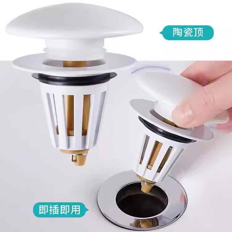 通用洗手盆即插陶瓷顶按压式弹跳下水器管配件洗脸池漏水塞子