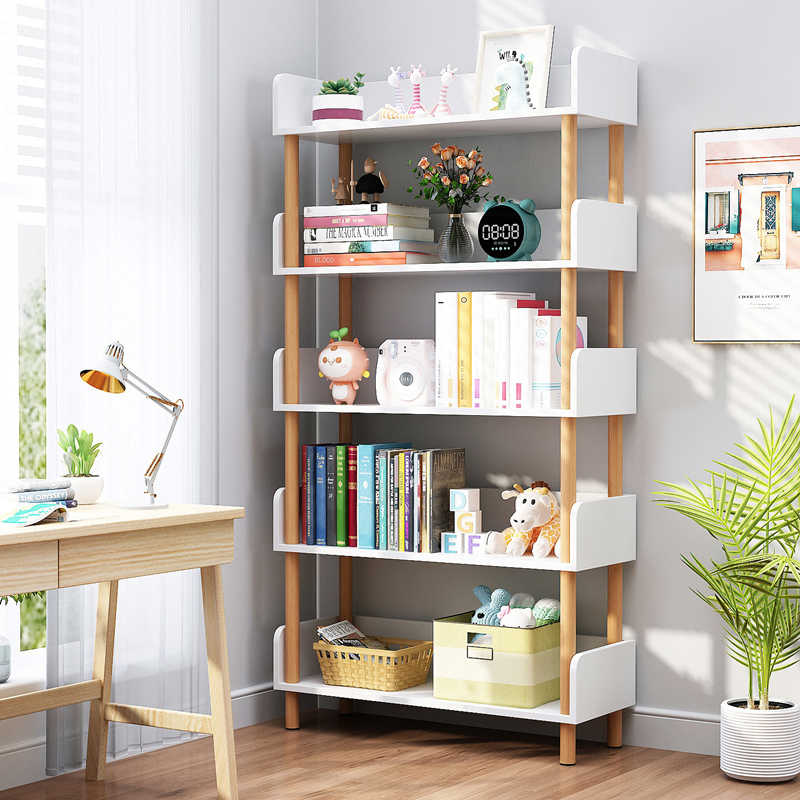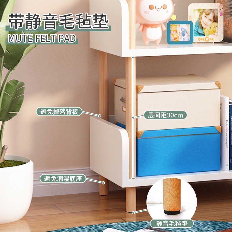 简易书架落地置物架多层儿童小书柜子实木一体靠墙收纳架客厅家用