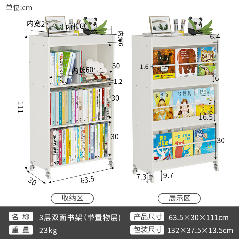 sofs绘本架移动书架儿童阅读双面玩具收纳架置物架图书馆旋转新款