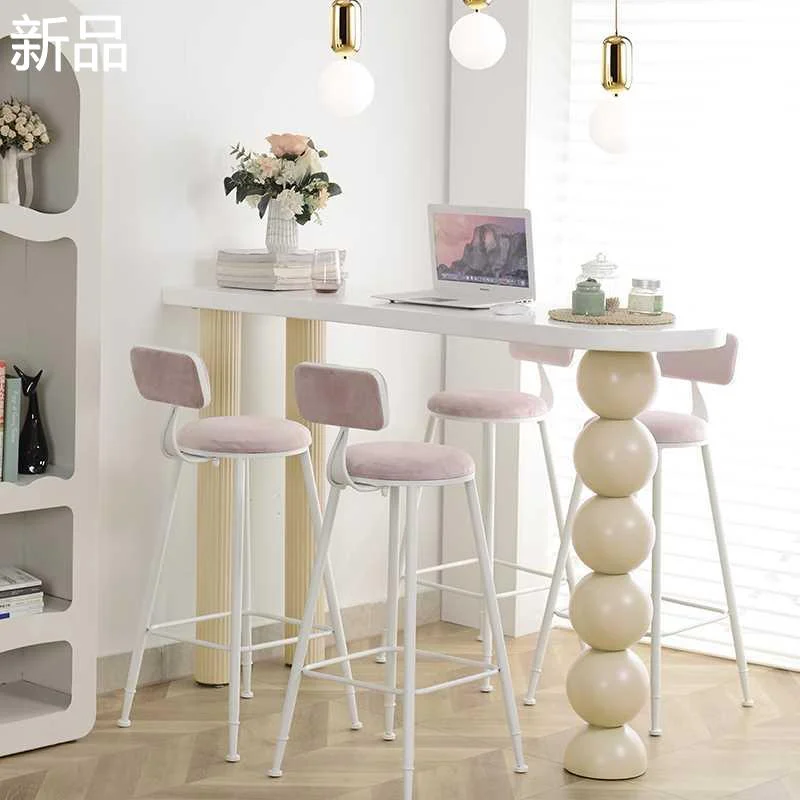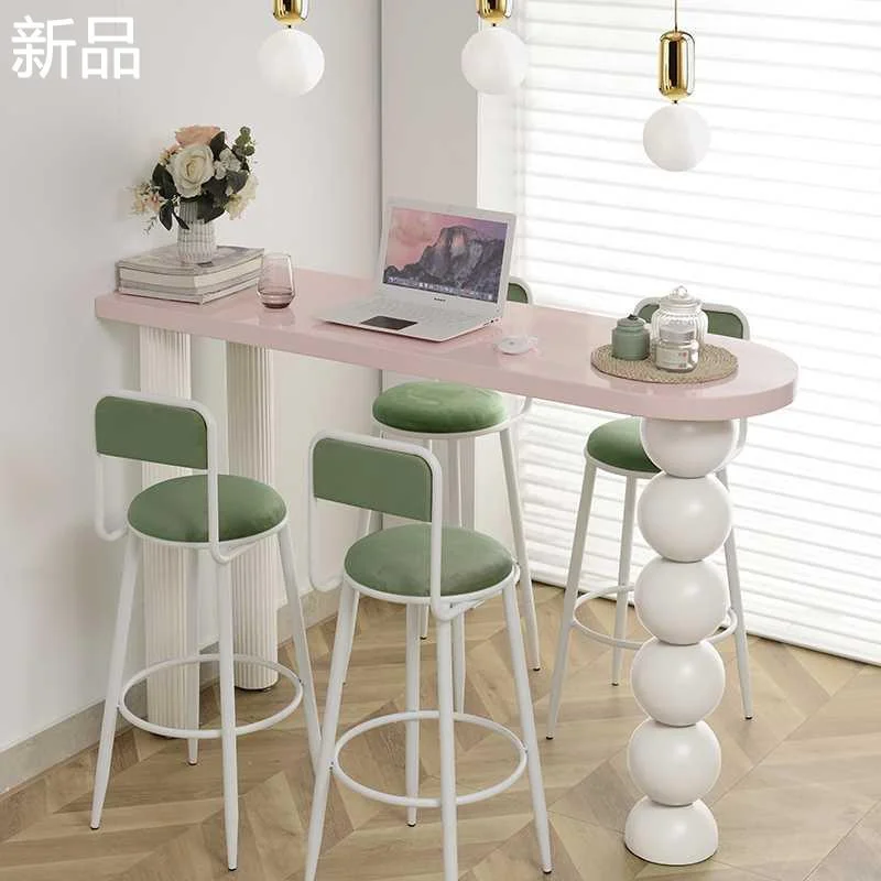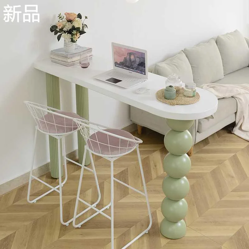 轻奢奶油风实木烤漆吧台桌椅网靠墙ins红隔断长条高脚桌书桌家用