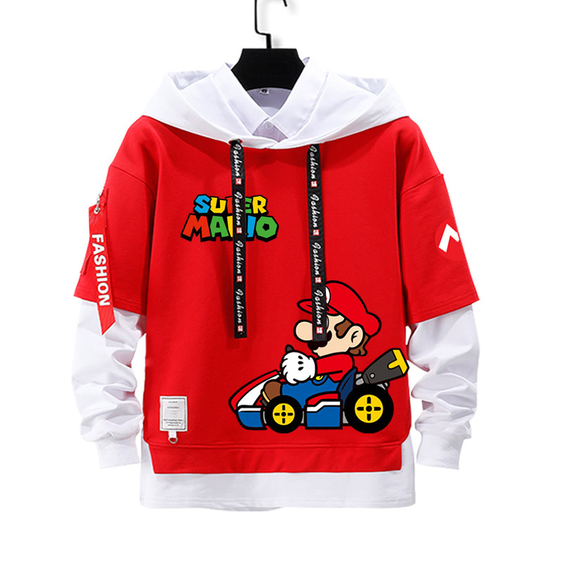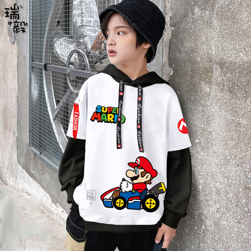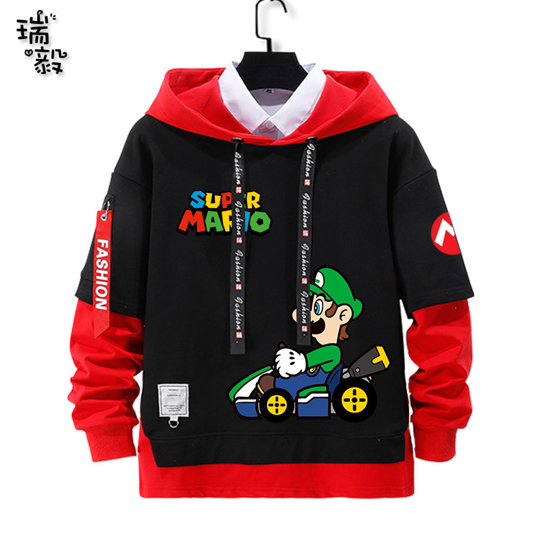 首页> 儿童> 超级马里奥赛车路易吉耀西周边假两件连帽卫衣男女儿童装学生外套