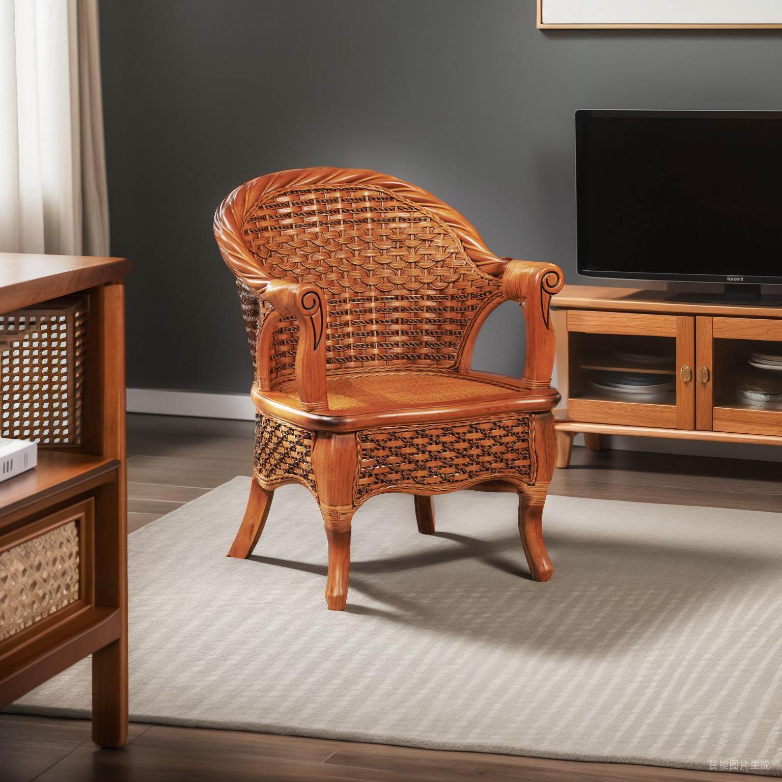 藤椅天然真藤编靠背椅阳台休闲家用实木滕靠椅老人椅老式腾椅圈椅