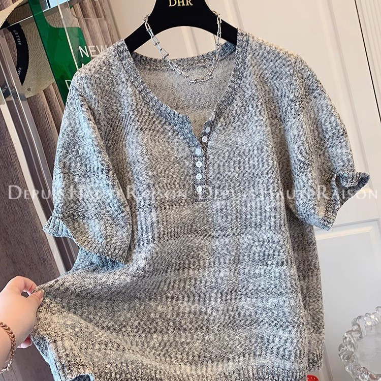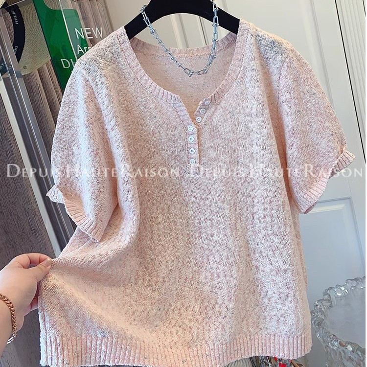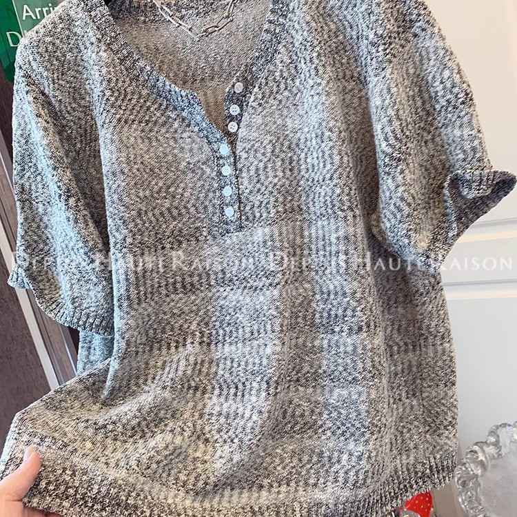 特大码2-300斤法式气质花纱短袖针织衫T恤宽松小个子上衣夏新款