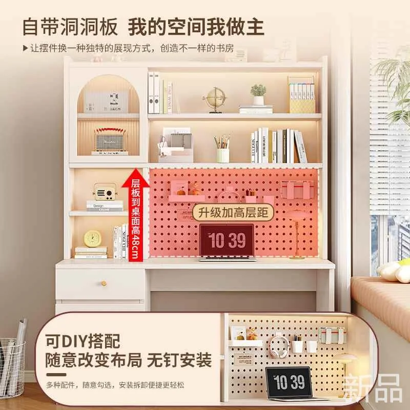 台式电脑桌卧室家用办公桌书桌组合书架一体简约学生学习桌写新品