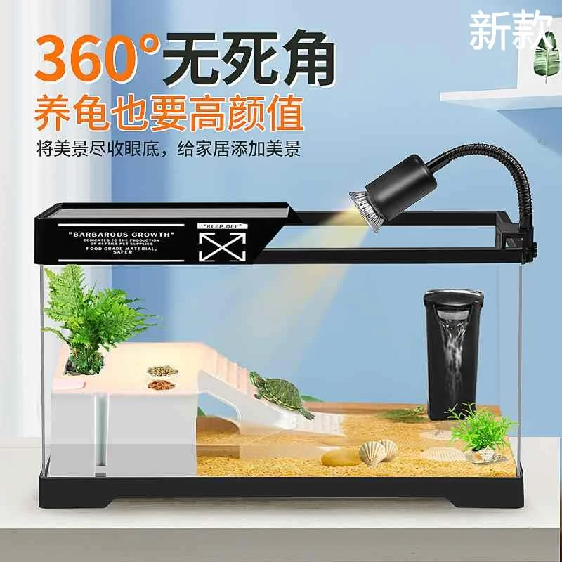 乌龟饲养缸带盖龟缸小鱼缸生态造景带晒台爬台塑料饲养箱小型新款