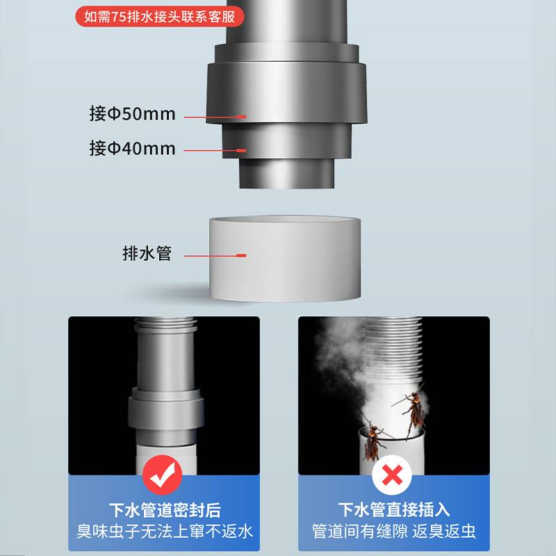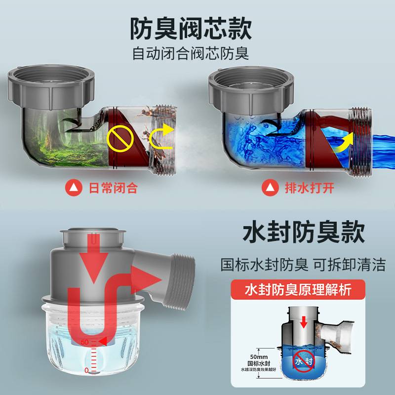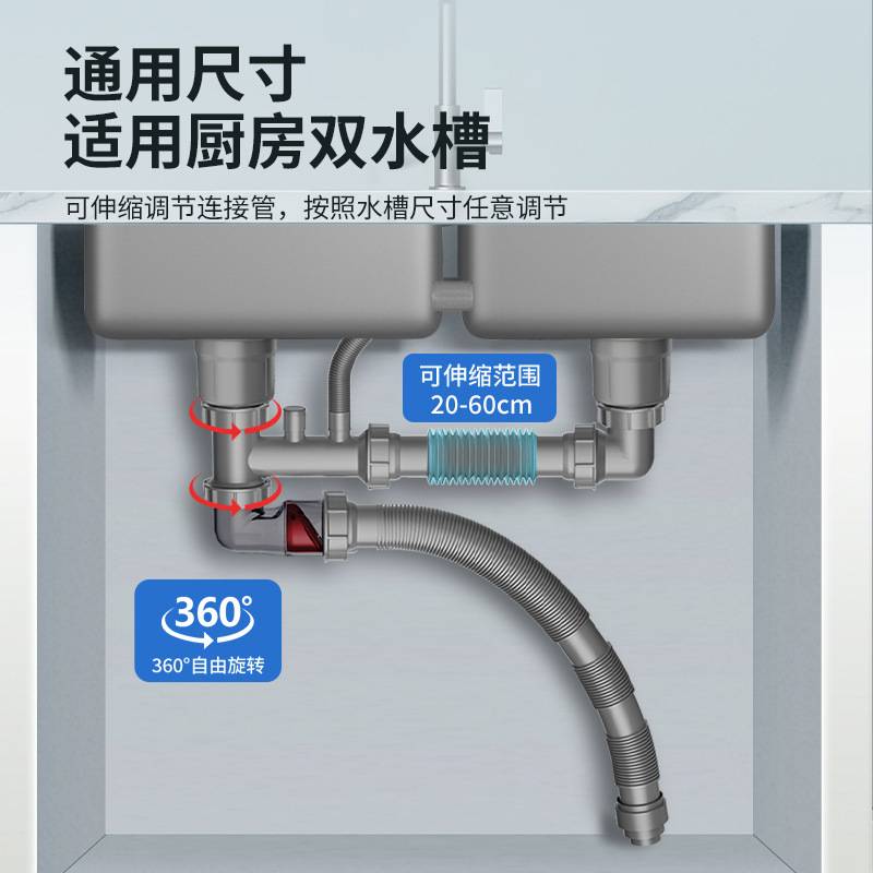 厨房洗菜盆下水管下水器菜盆高低盆可用 下水管道防返臭神器