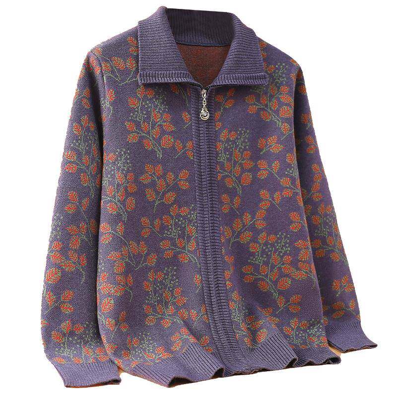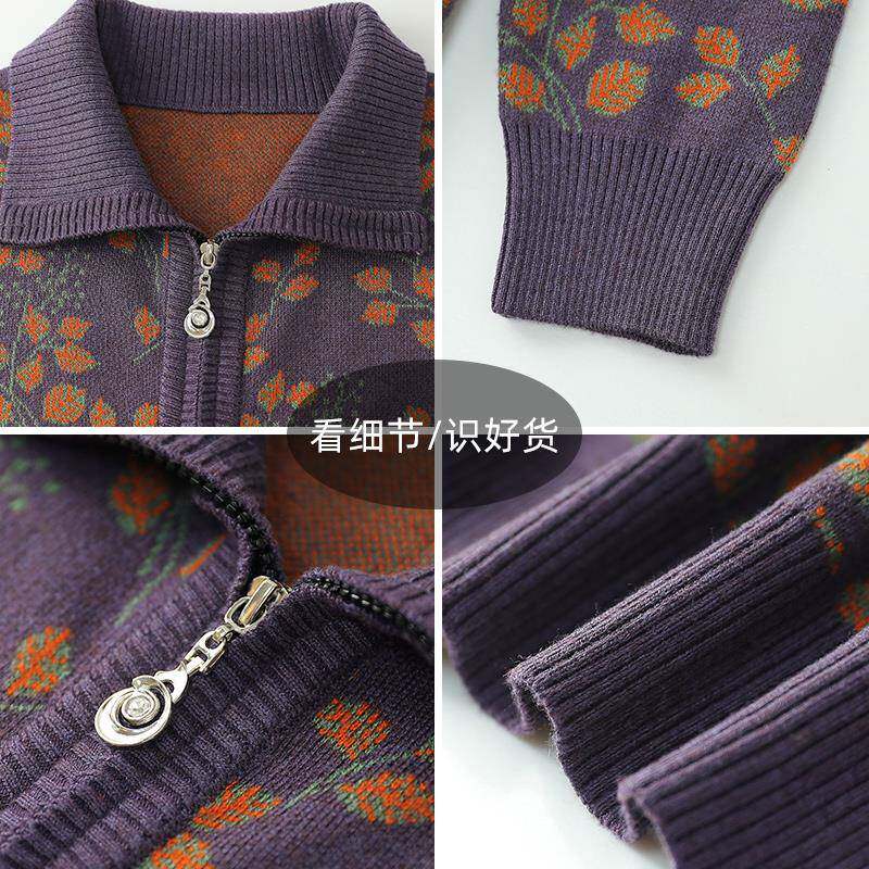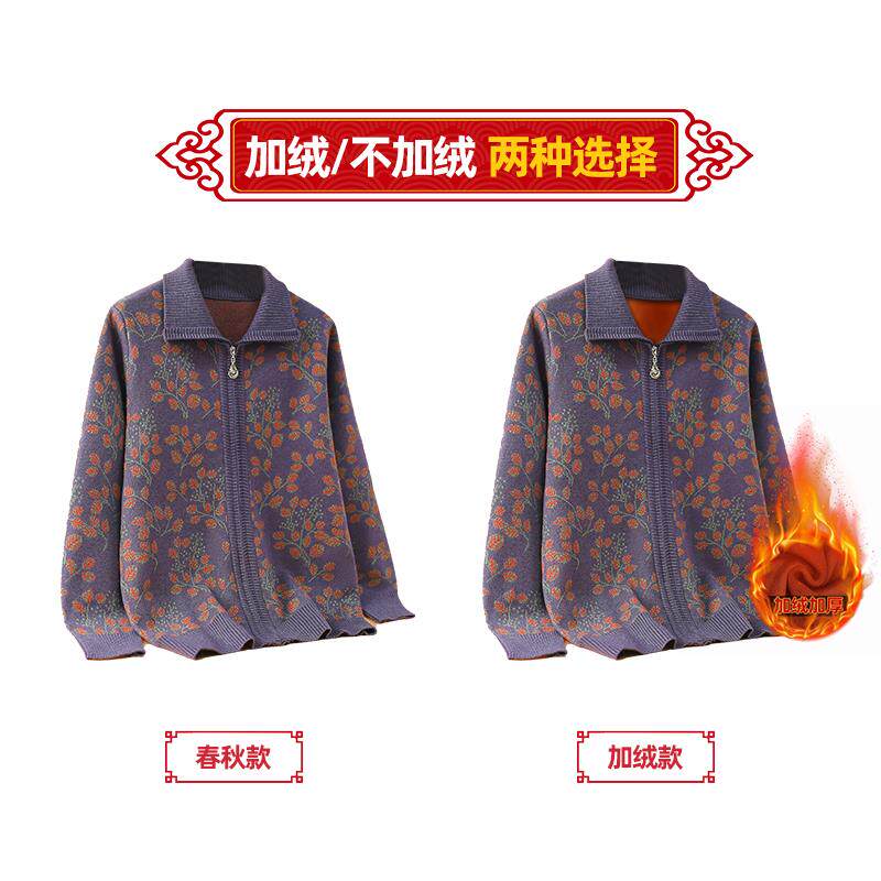中老年人秋冬开衫外套女60岁70老太太冬装加绒加厚针织衫老人毛衣