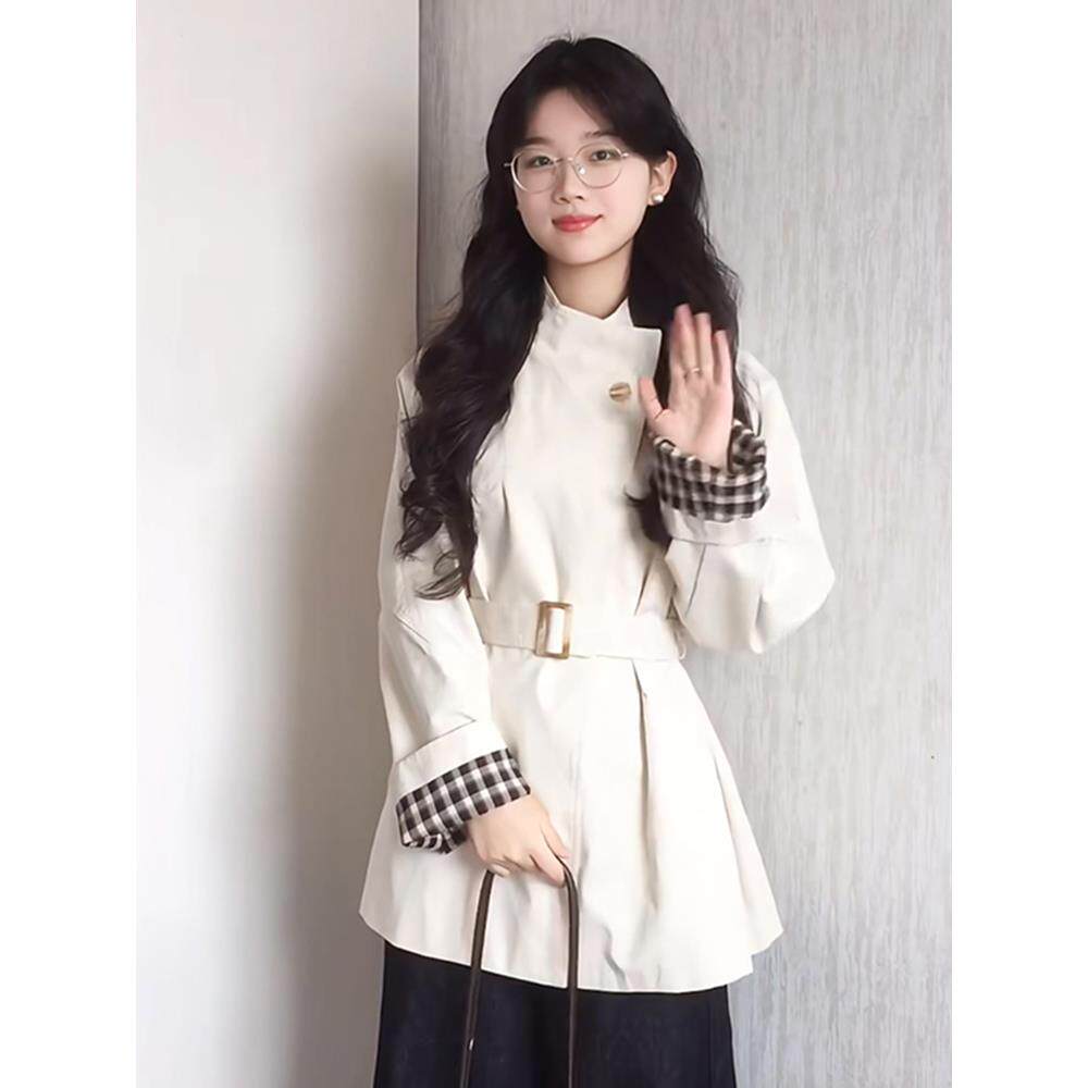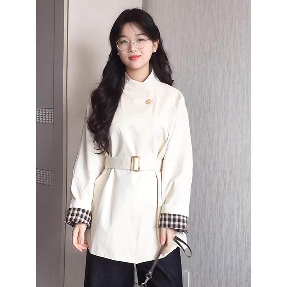 白色立领短款风衣外套女2025春秋季新款爆款小个子韩系高级感休闲