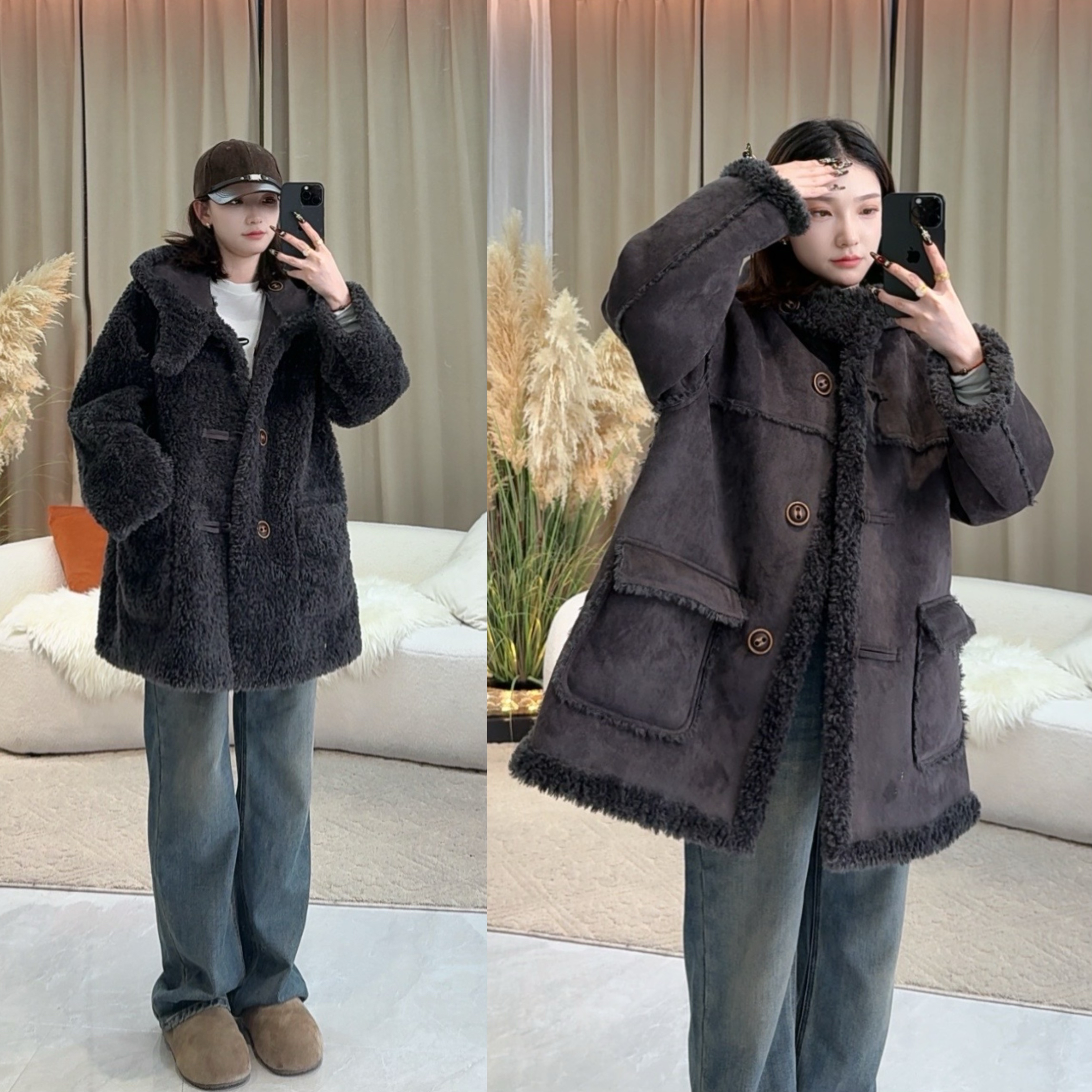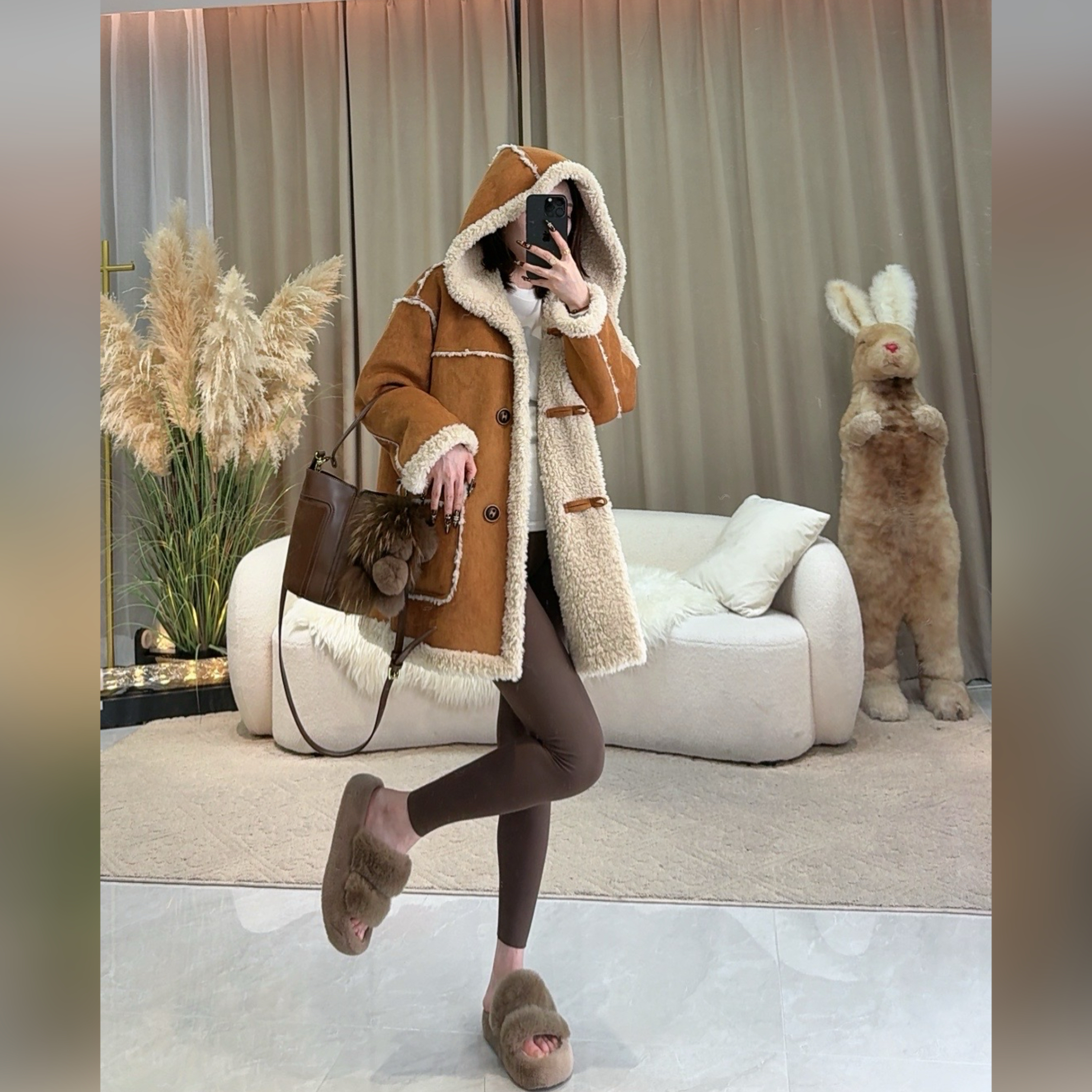 【暖冬日记】双面双穿羊毛颗粒绒羊筋绒体毛一体连帽冬季新款外套