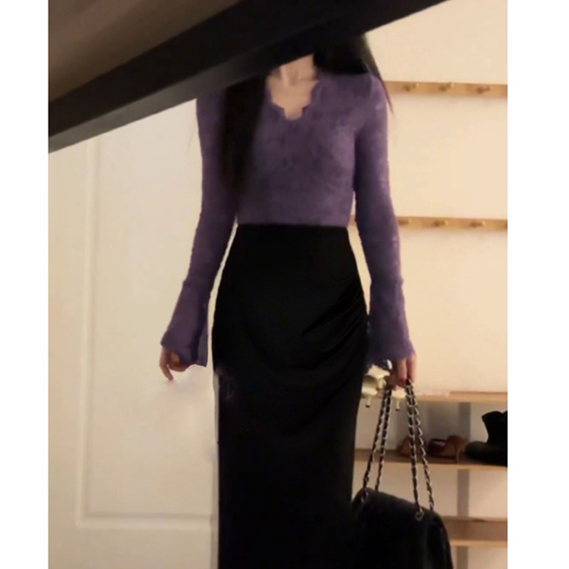 时尚修身精致千金风套装2025秋季新款显瘦上衣+半身裙两件套D3621