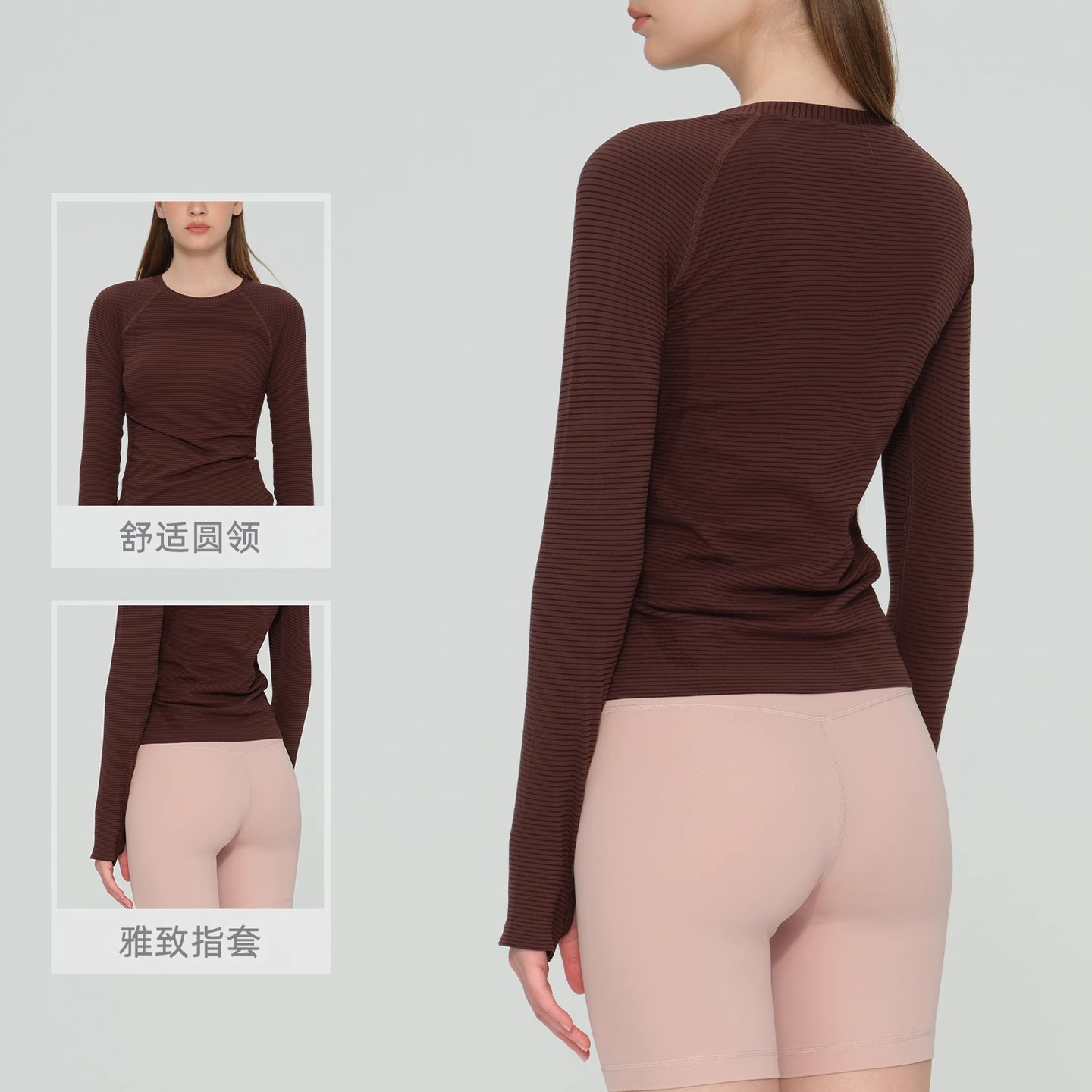 瑜伽服长袖速干运动服圆领高弹修身吸湿排汗健身服透气秋冬打底