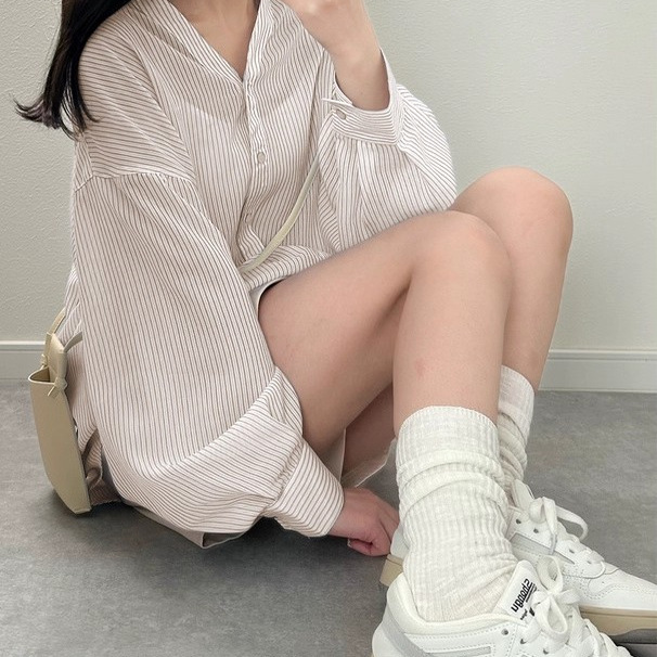 C06090日单客供料GL单排扣V领后绑带宽松女气质薄款条纹长袖衬衫