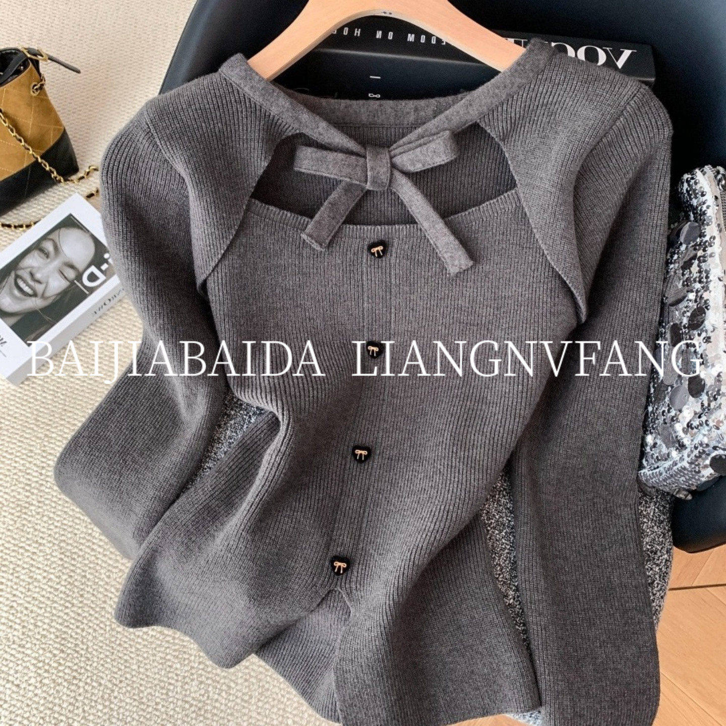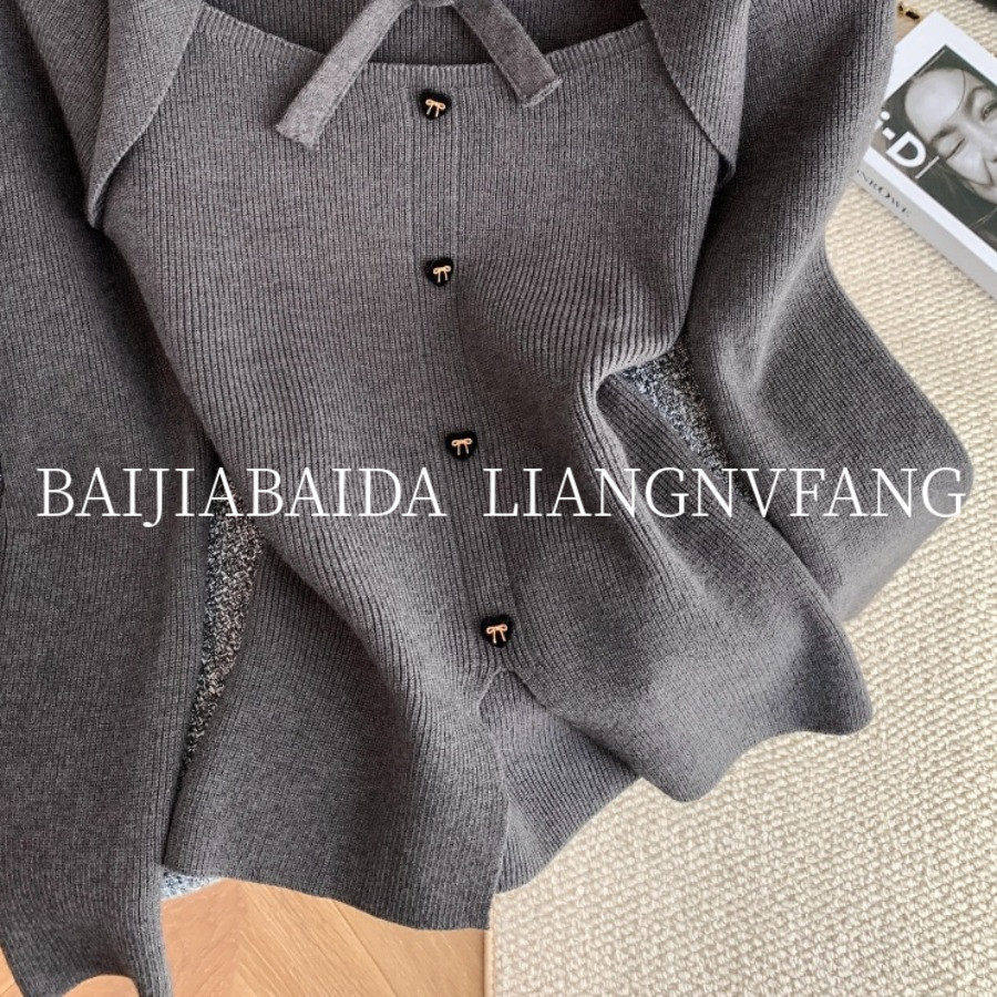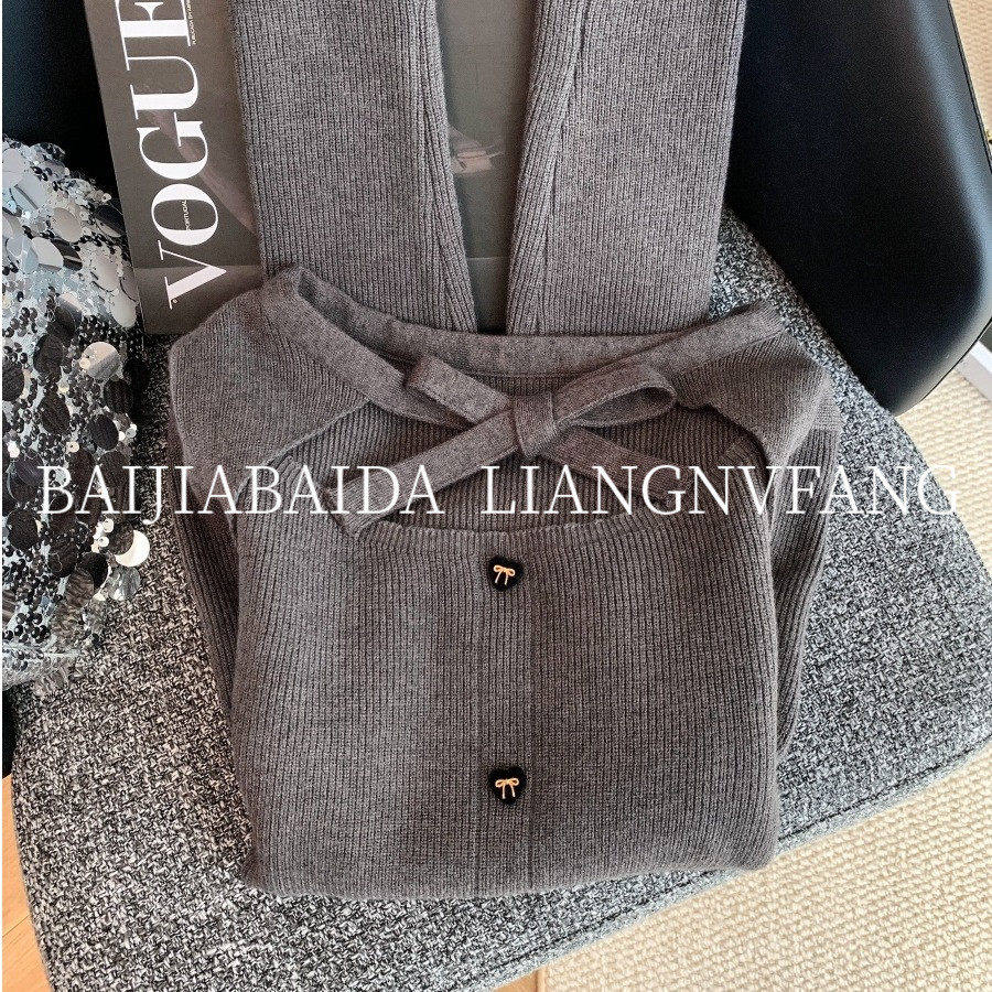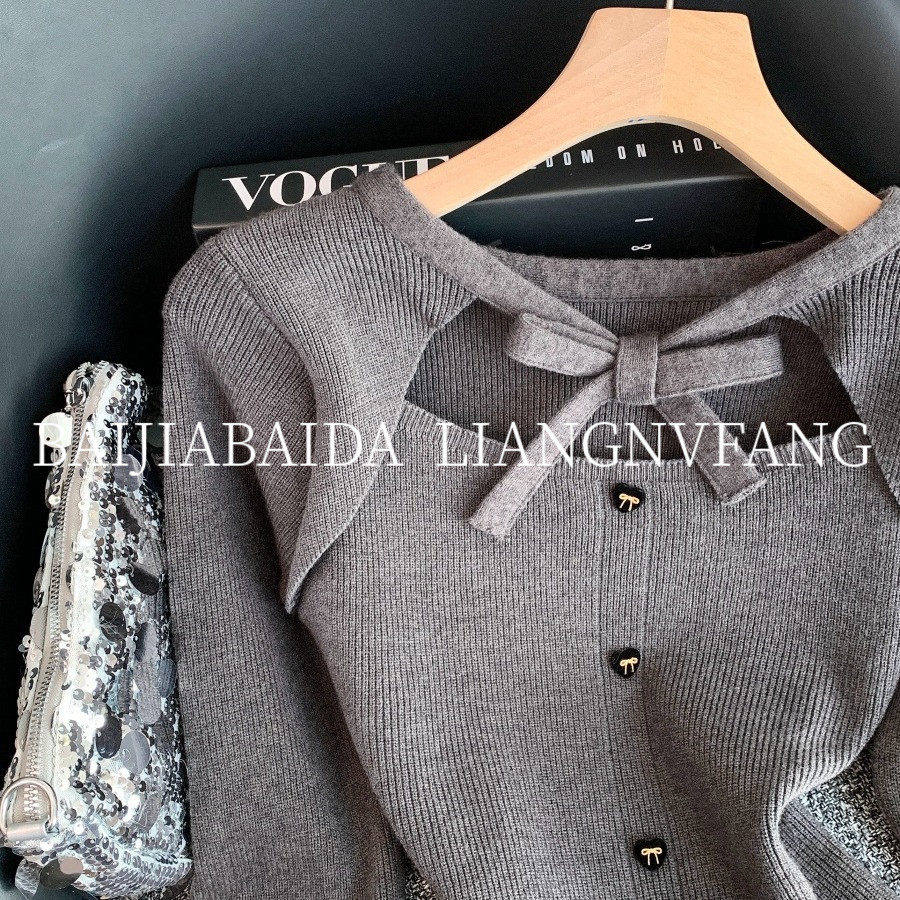 广州十三行女装欧货秋冬季法式小香风时尚蝴蝶结假两件针织衫毛衣
