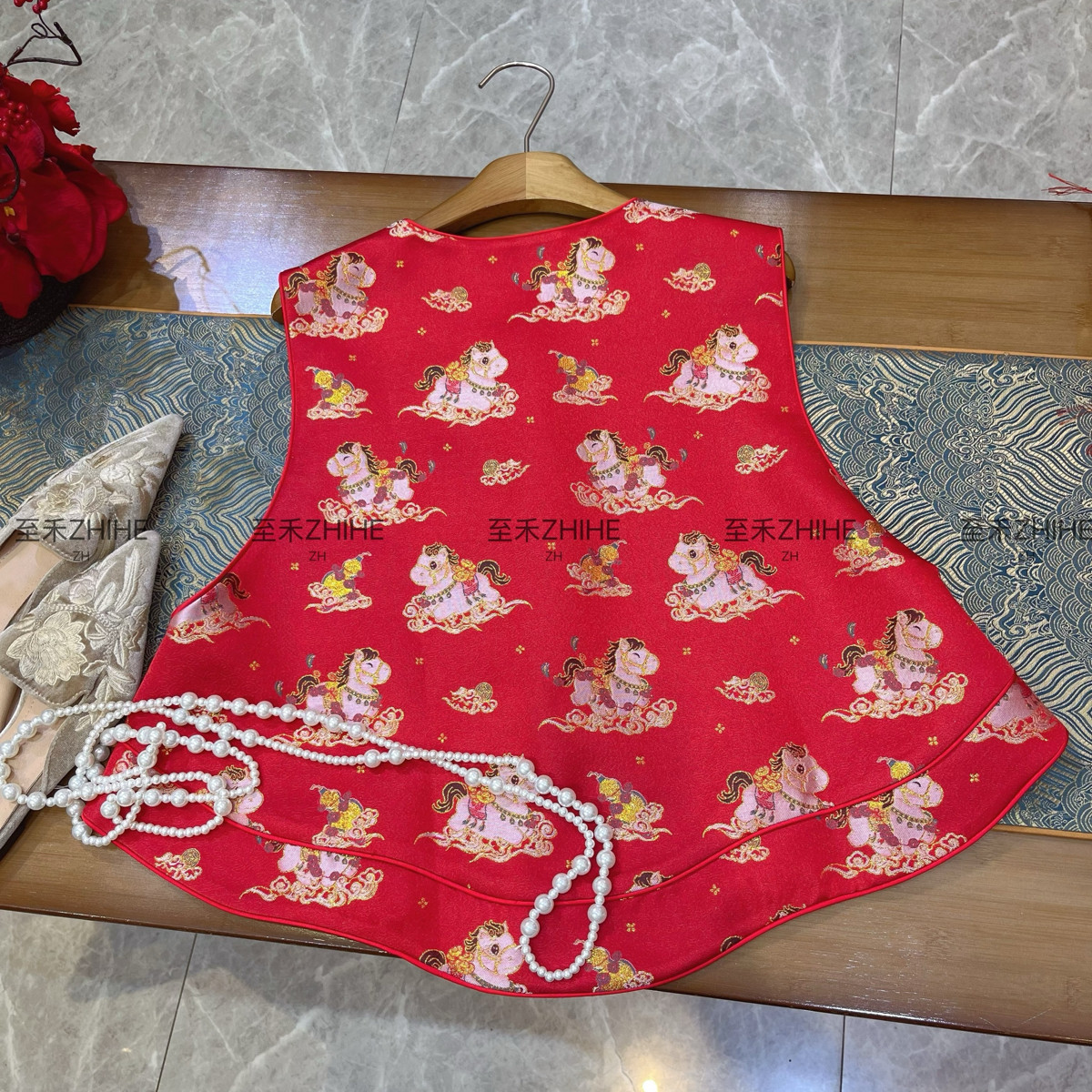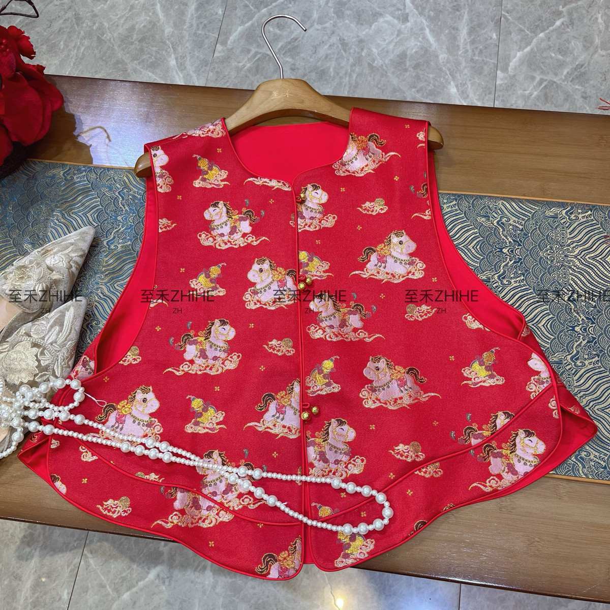 26年早春!极简大牌老钱新中式人丝织金马上有钱提花马甲