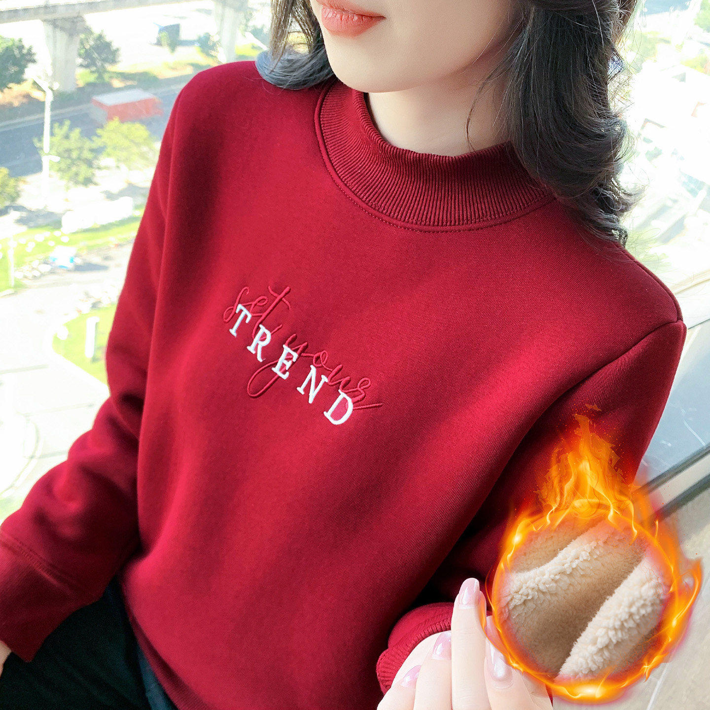 半高领卫衣女装加绒2025冬季新款加厚保暖上衣内搭套头打底衫外穿