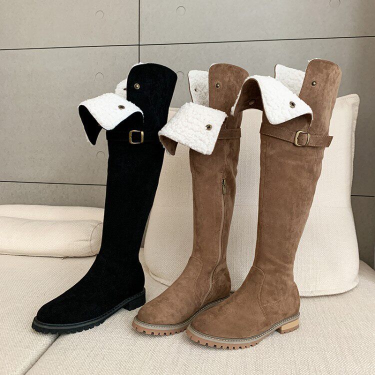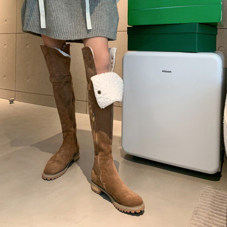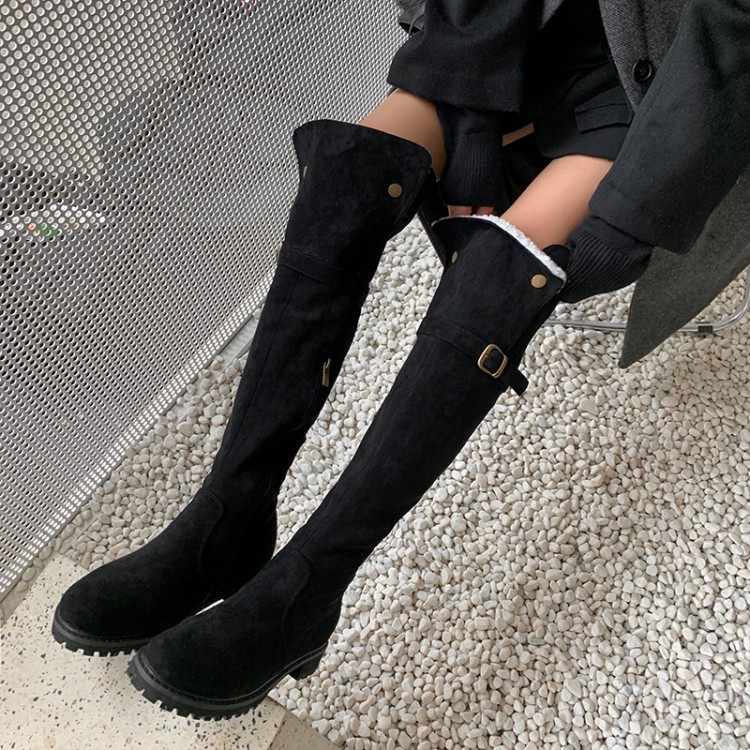 过膝绒面长靴女韩版平底长筒靴2020新款皮带扣骑士靴雪地长靴