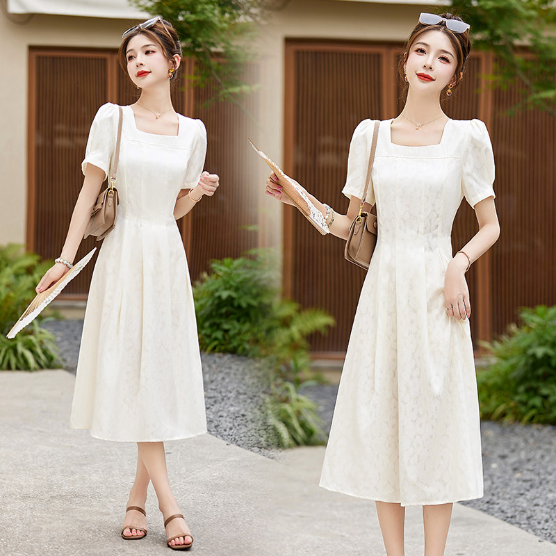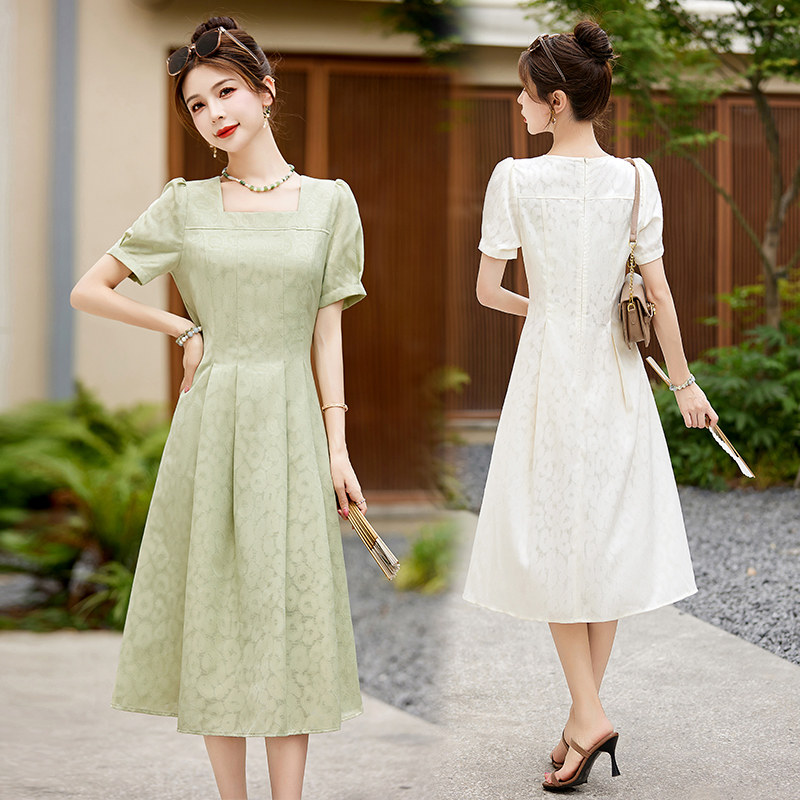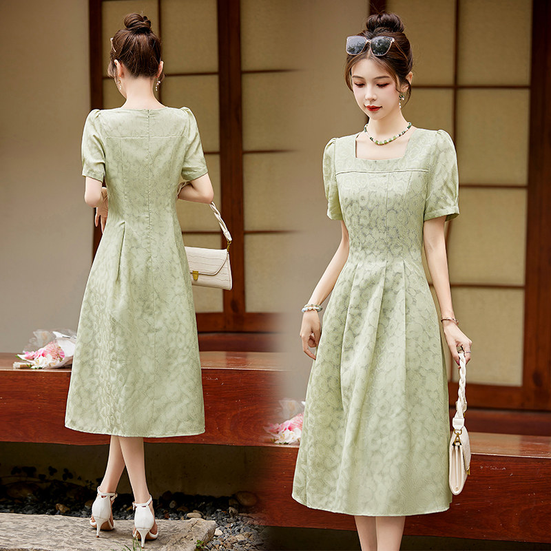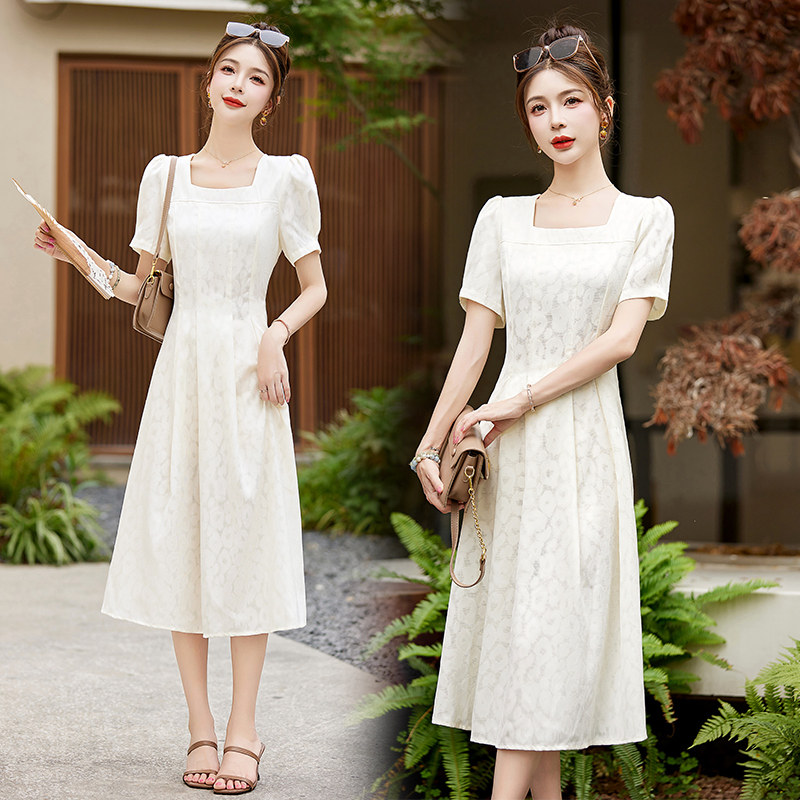 吾爱衣2337款连衣裙女小个子法式方领高端气质修身精致裙子