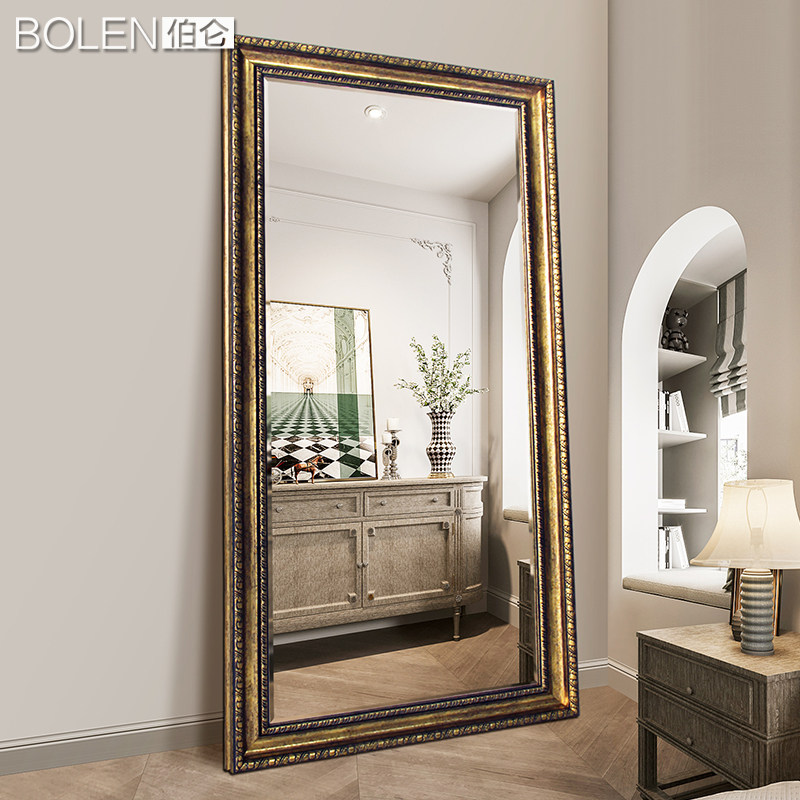 首页> 家居> BOLEN 欧式穿衣镜子美式全身镜复古落地镜服装店立体大镜子壁挂墙