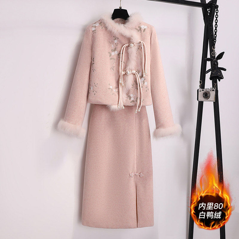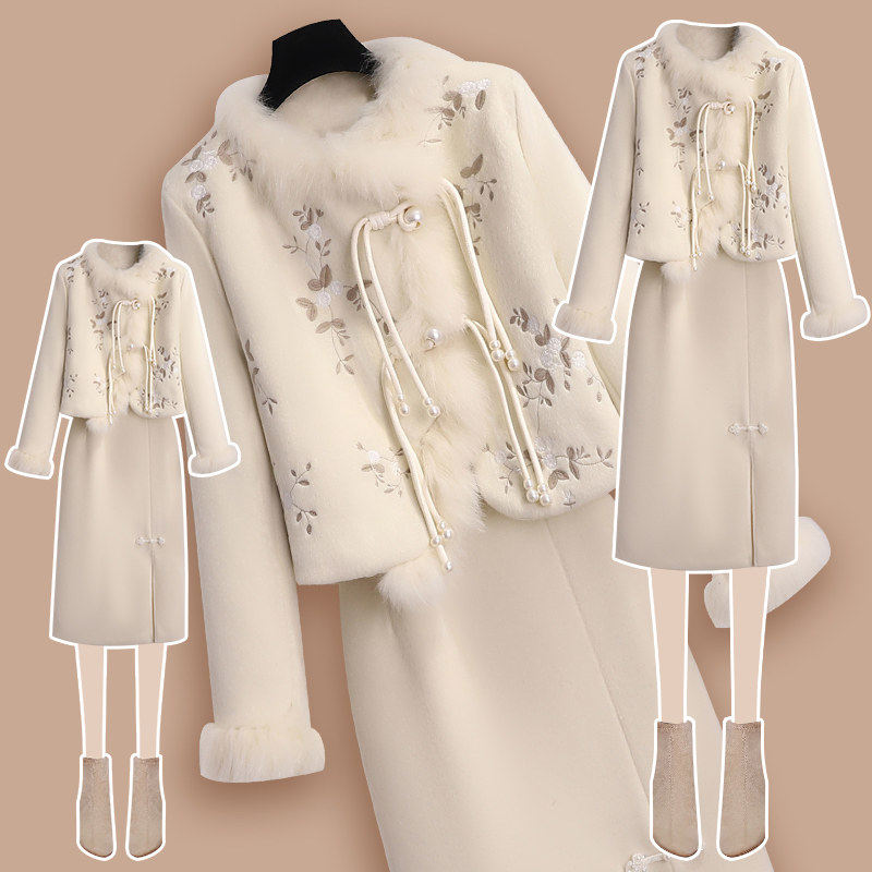 国风新中式旗袍连衣裙套装女秋冬季2026新款轻奢高级感名媛两件套
