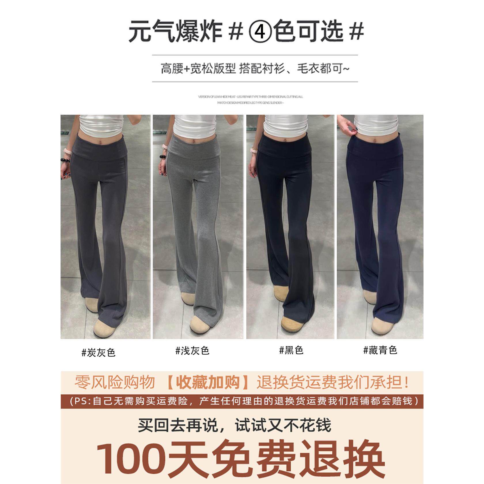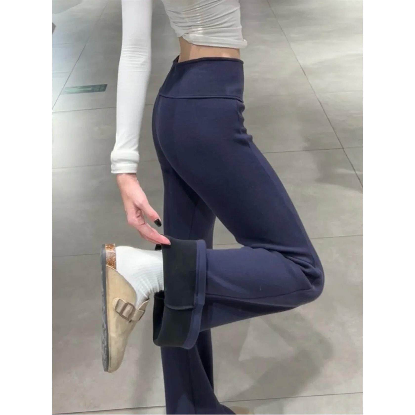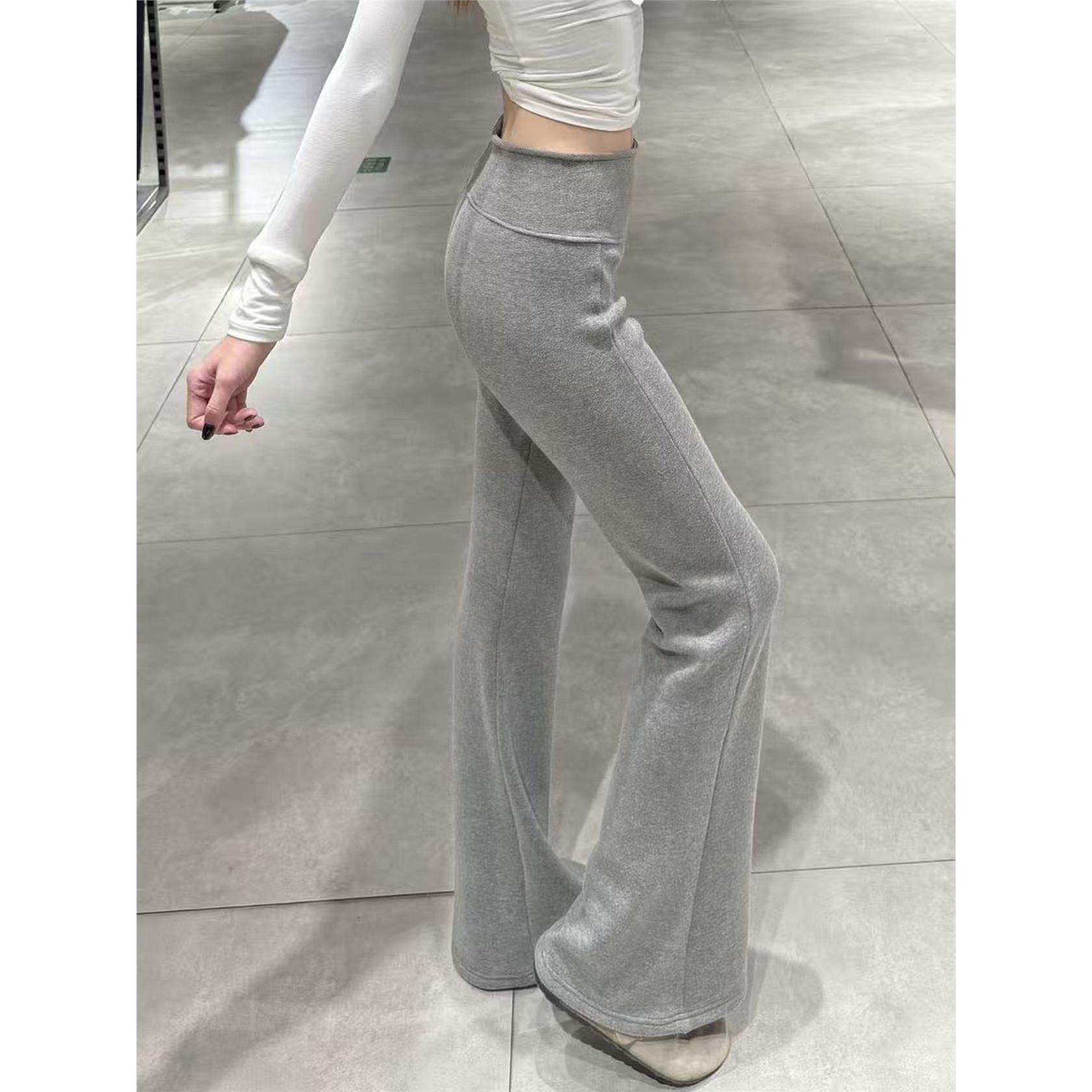 灰色加绒微喇叭裤女秋冬季低腰修身显瘦紧身休闲瑜伽运动马蹄卫裤
