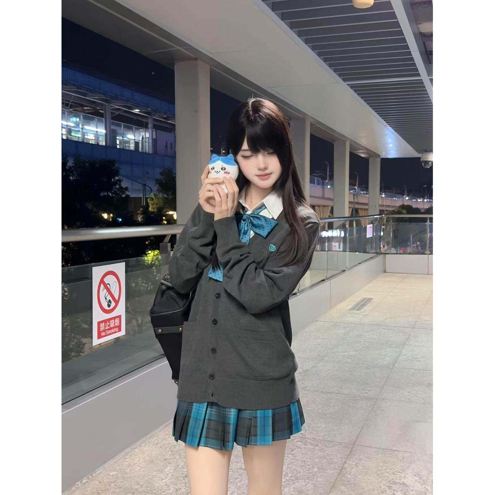 夏日和FAQ风铃 基础JK制服V款领毛衣衣开衫系学院风针织衫日外套