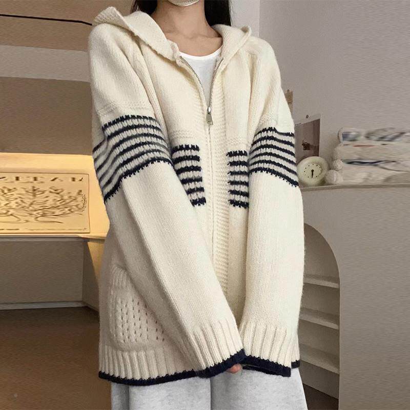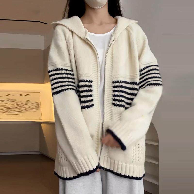 高级感纹白色衣外套女秋冬慵懒025早C9M46213秋新款宽松2针织毛开