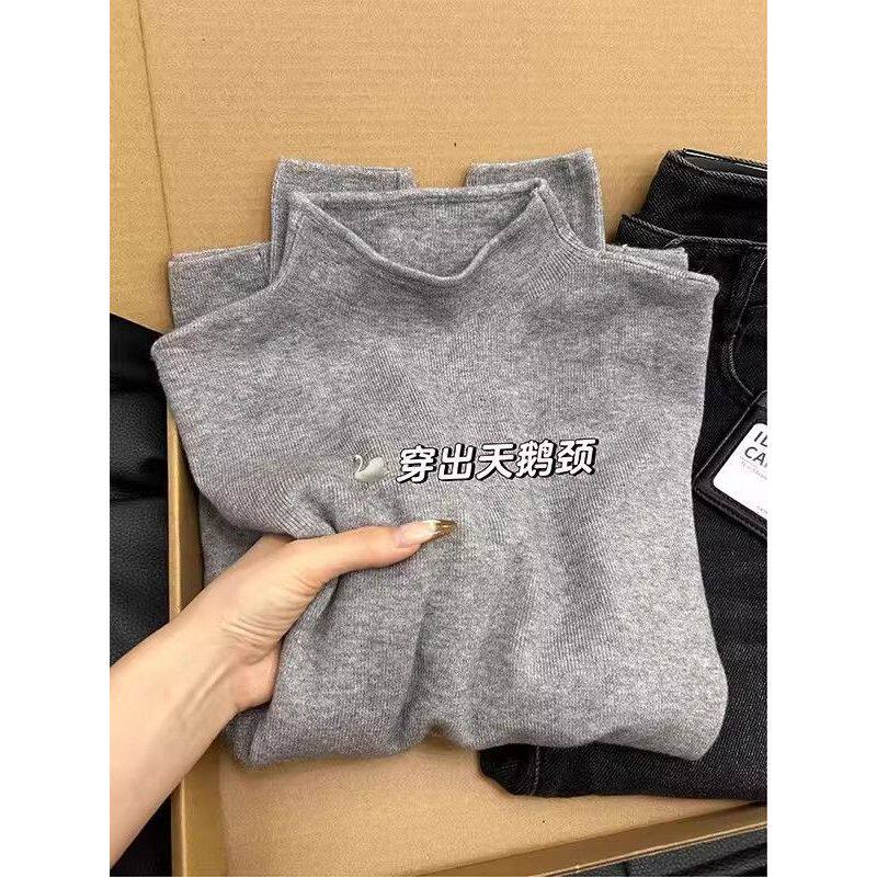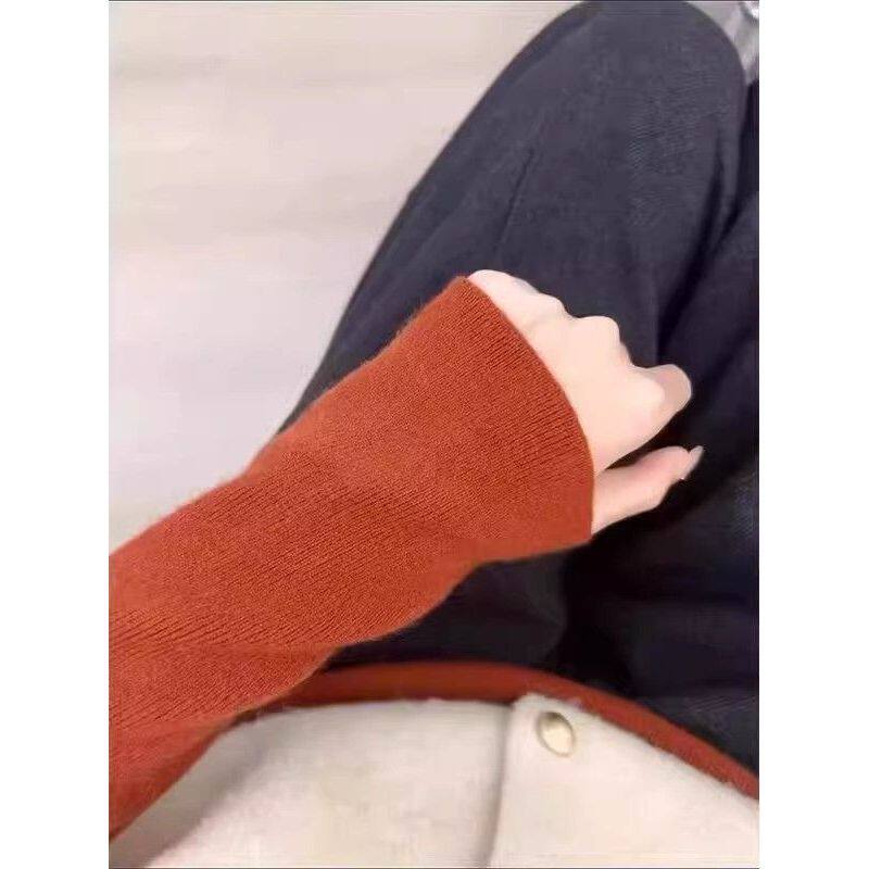 巨好看的秋冬柿子红立领打底衫女内搭miu系毛衣保暖长袖针织上衣