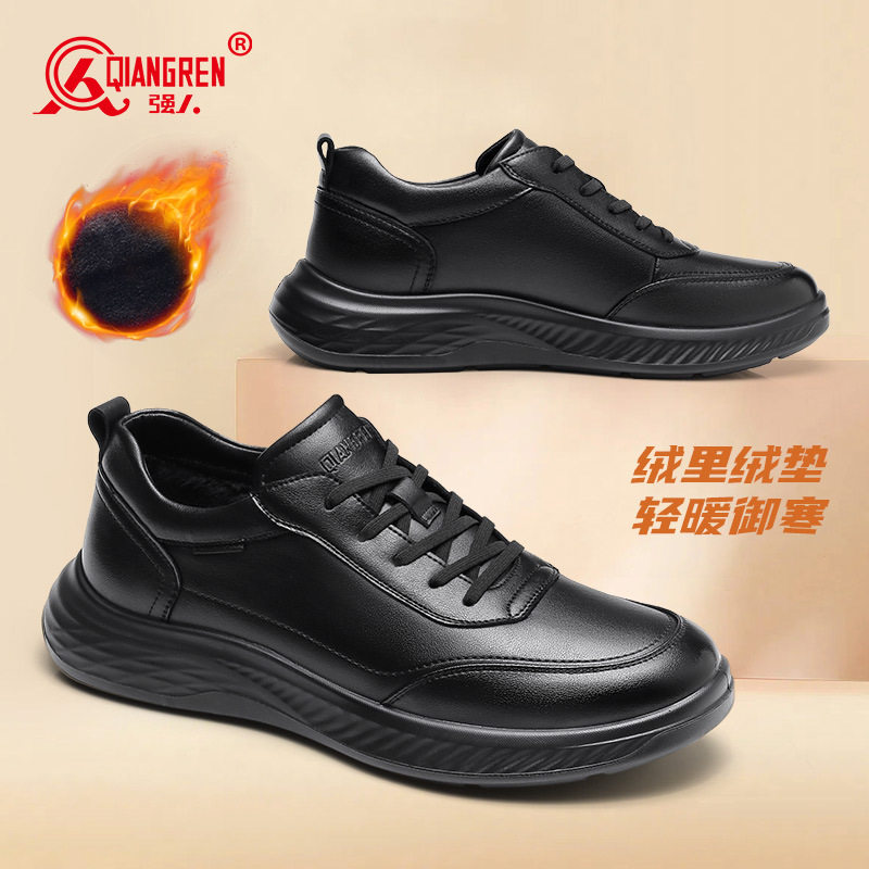 3515强人品牌正品男鞋运动皮鞋冬季加绒保暖休闲鞋行政公务鞋子通