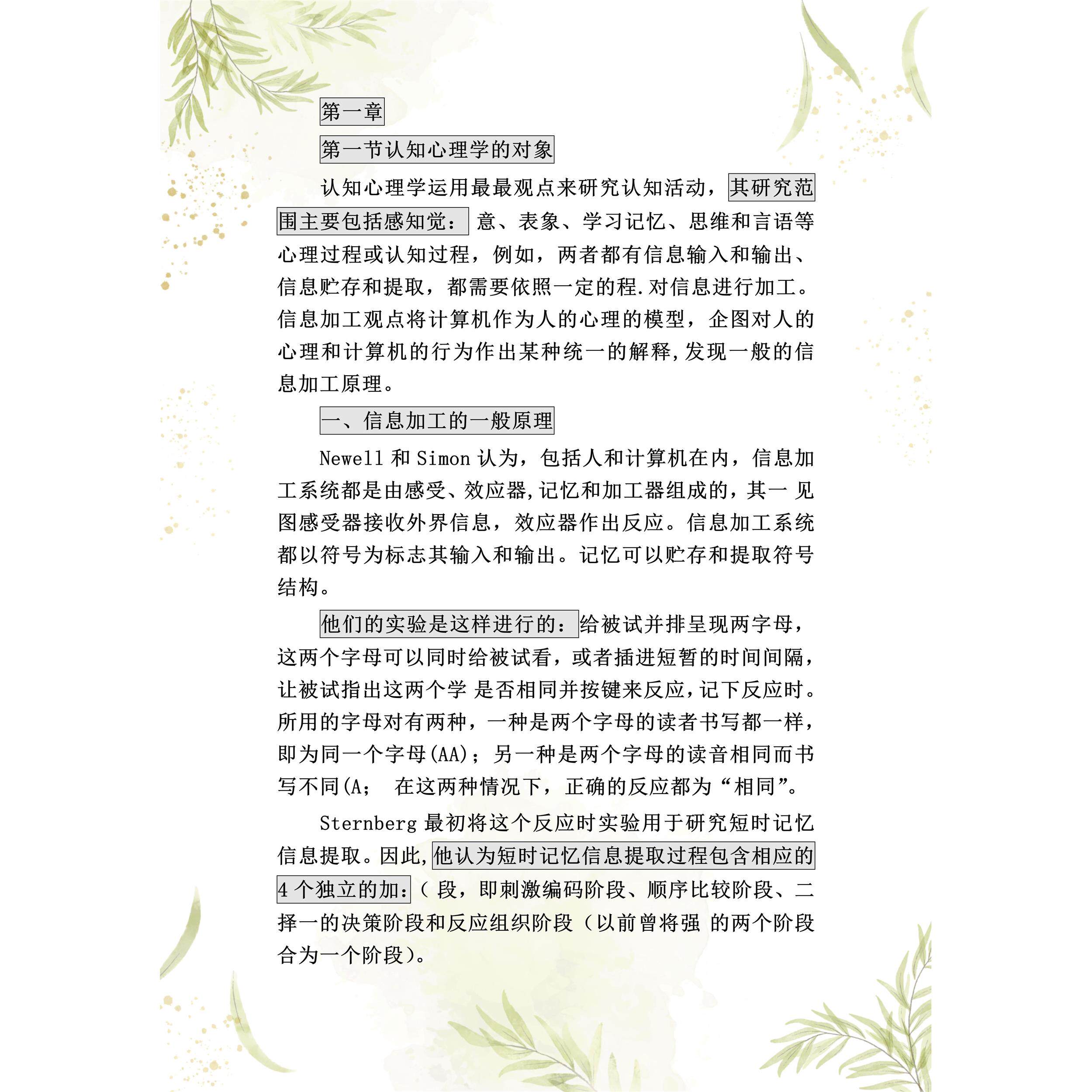 考点重点 06335认知心理学 考纲讲解自考笔记 资料 自考复习过关思维导图 精讲视频网课 考前押题资料