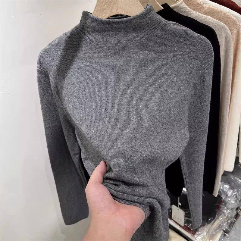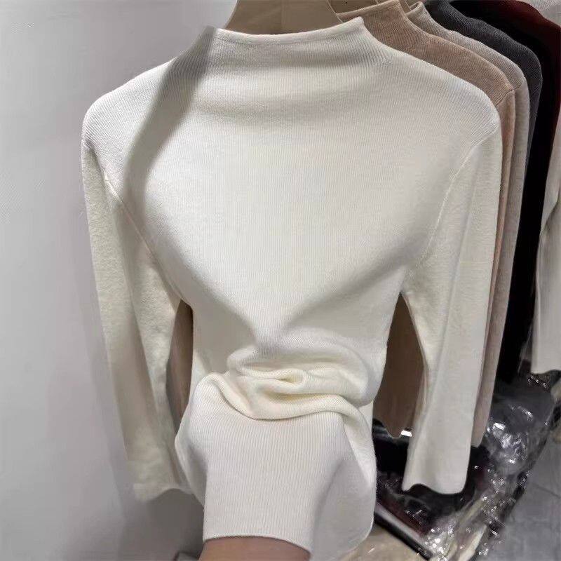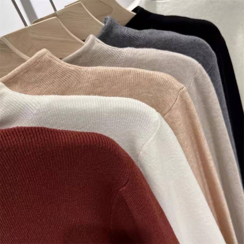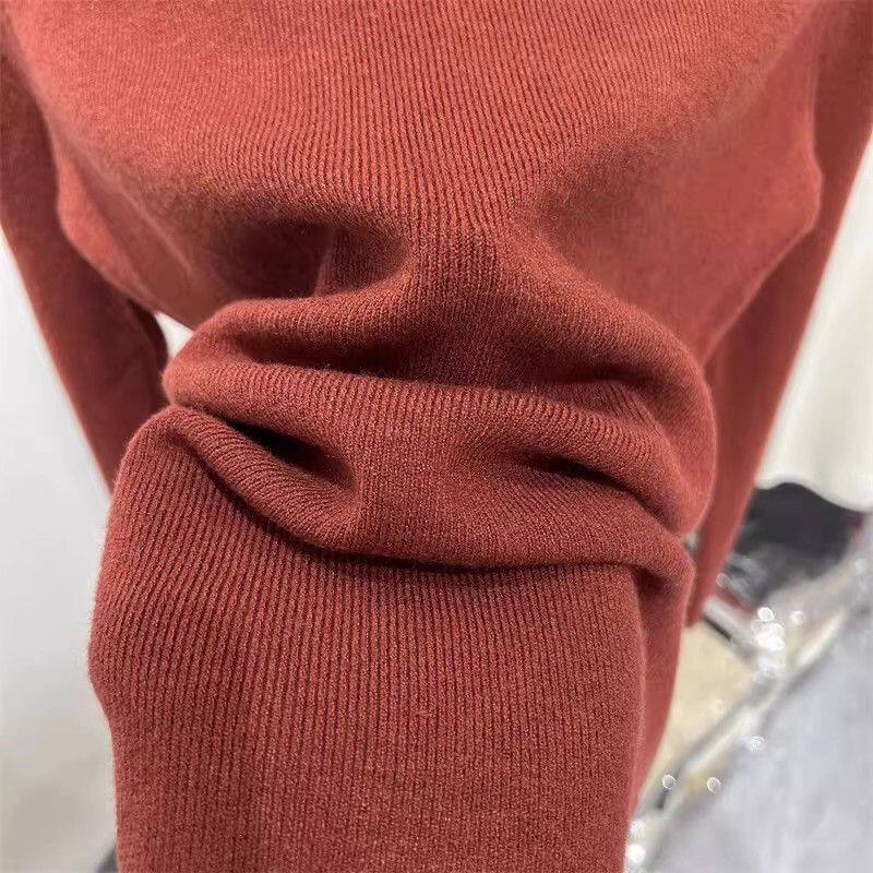 高级感安哥拉红修身长袖针织打底衫女秋冬内搭立领显瘦毛衣上衣