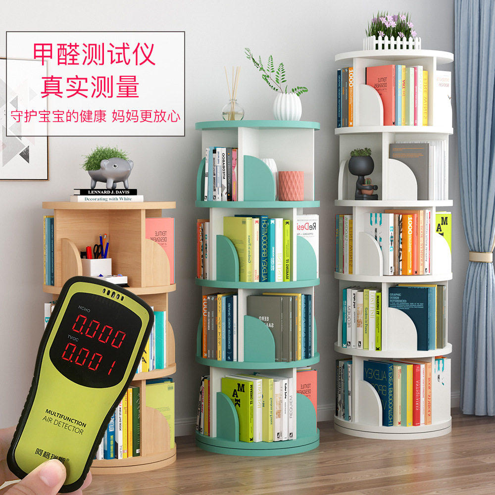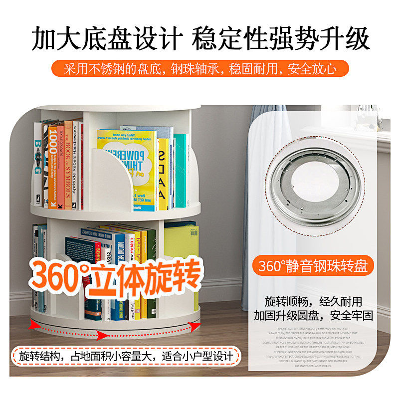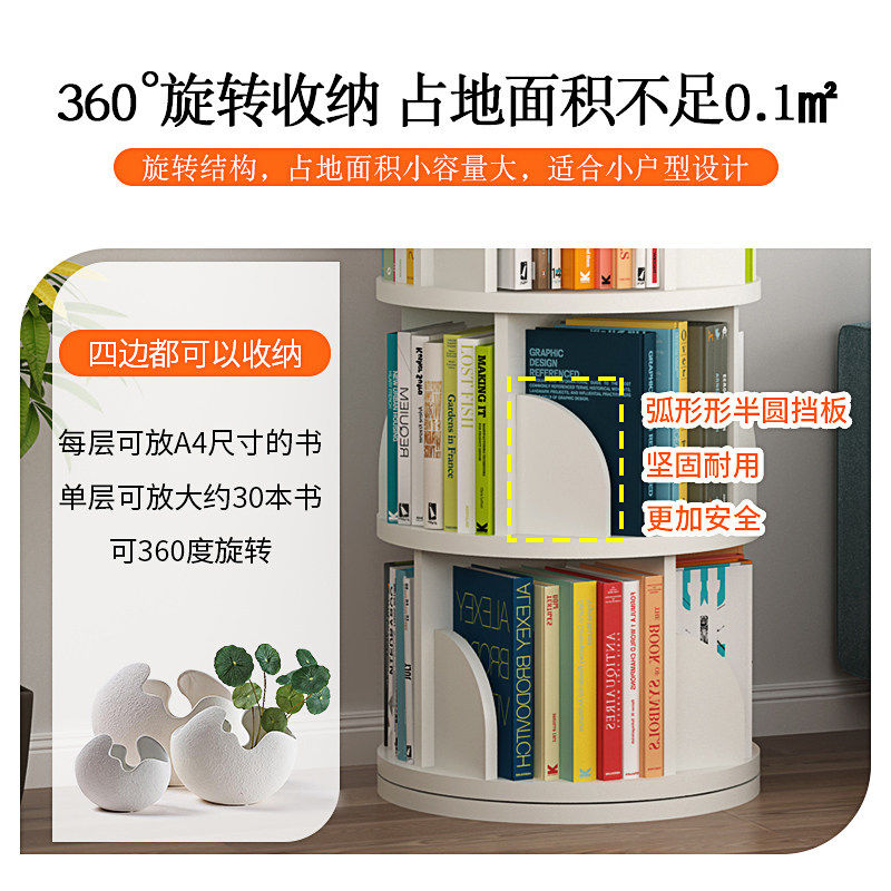 360度旋转书架省空间 儿童落地绘本架简约家用 真五层实木加大款