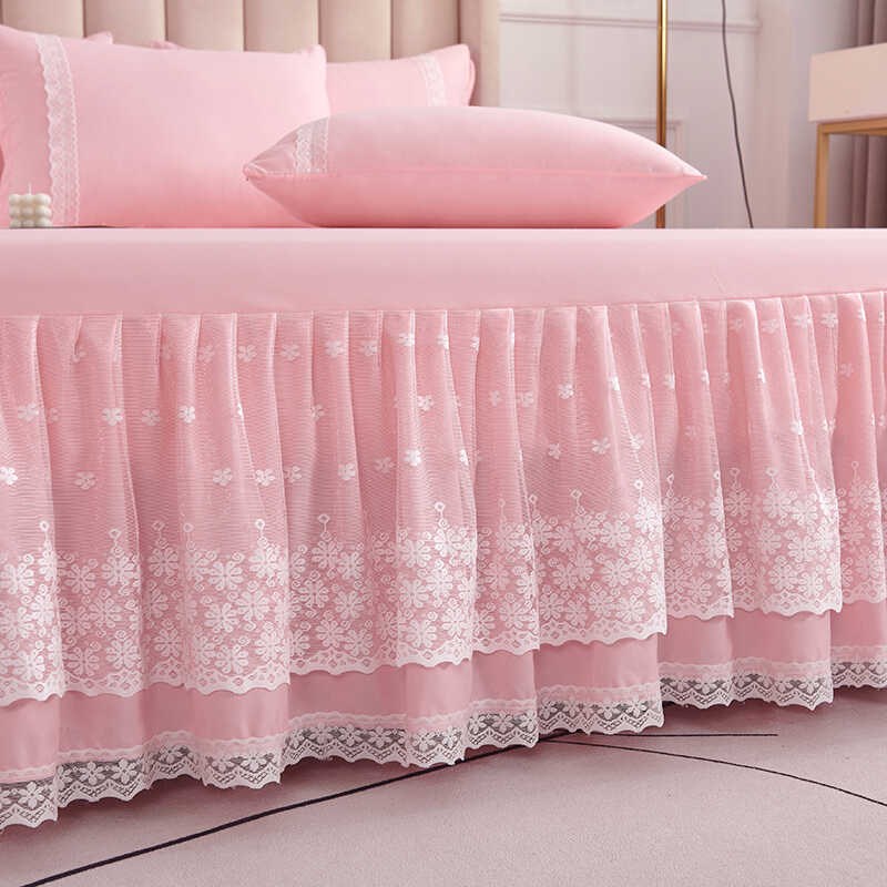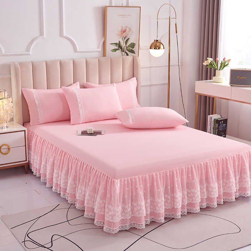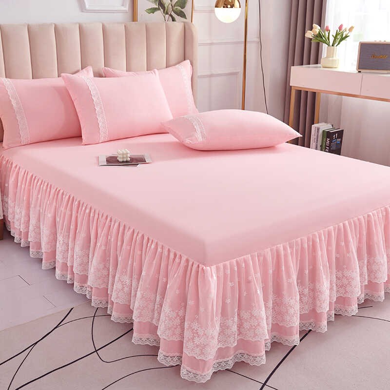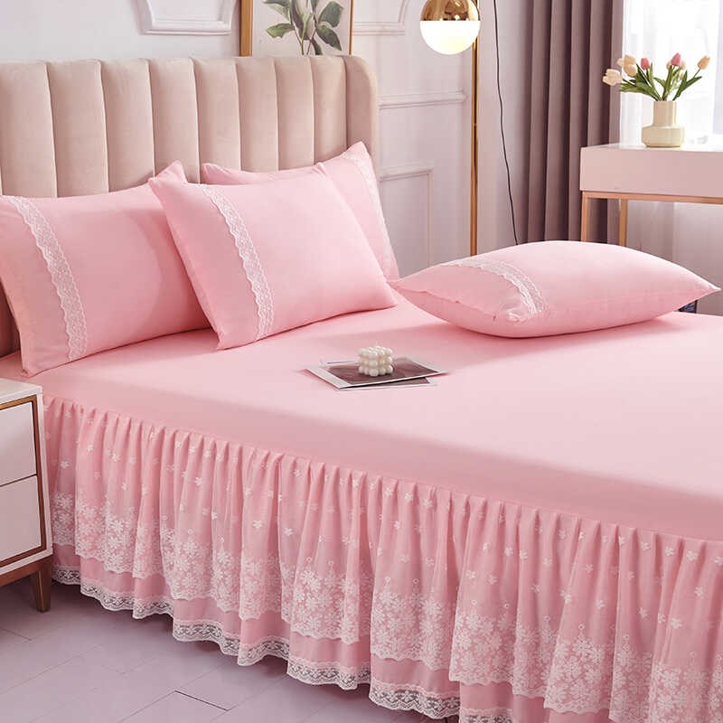 新款蕾丝花边床裙单件三件套韩式公主风亲肤纯色防滑床套床单床罩