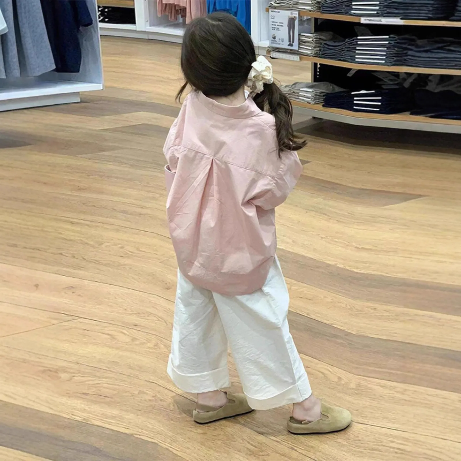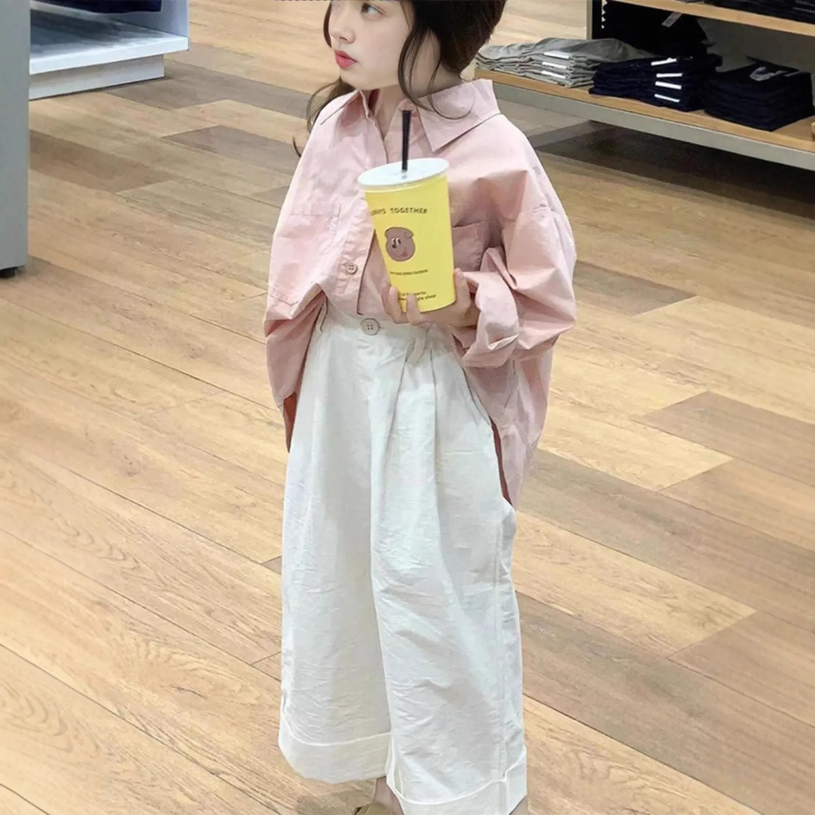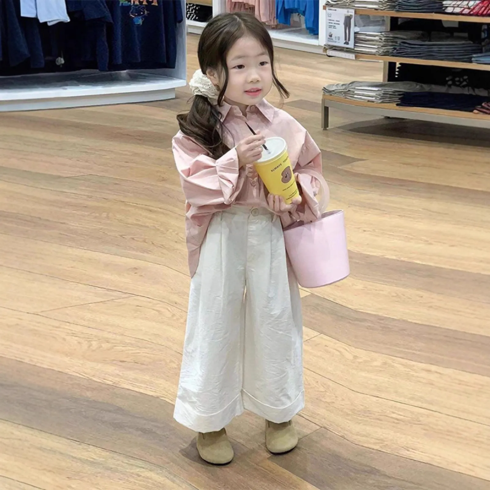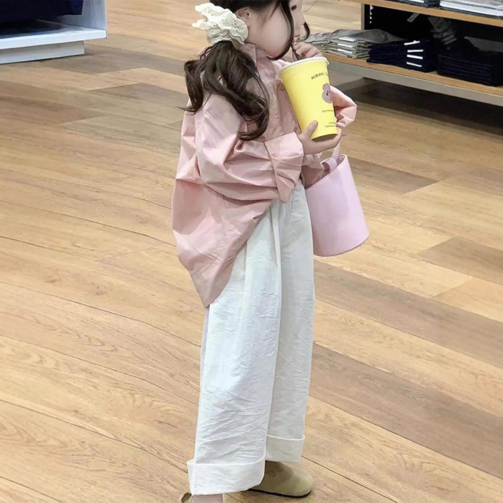 女童套装2025秋季新款洋气百搭纯色衬衫韩版休闲长裤两件套