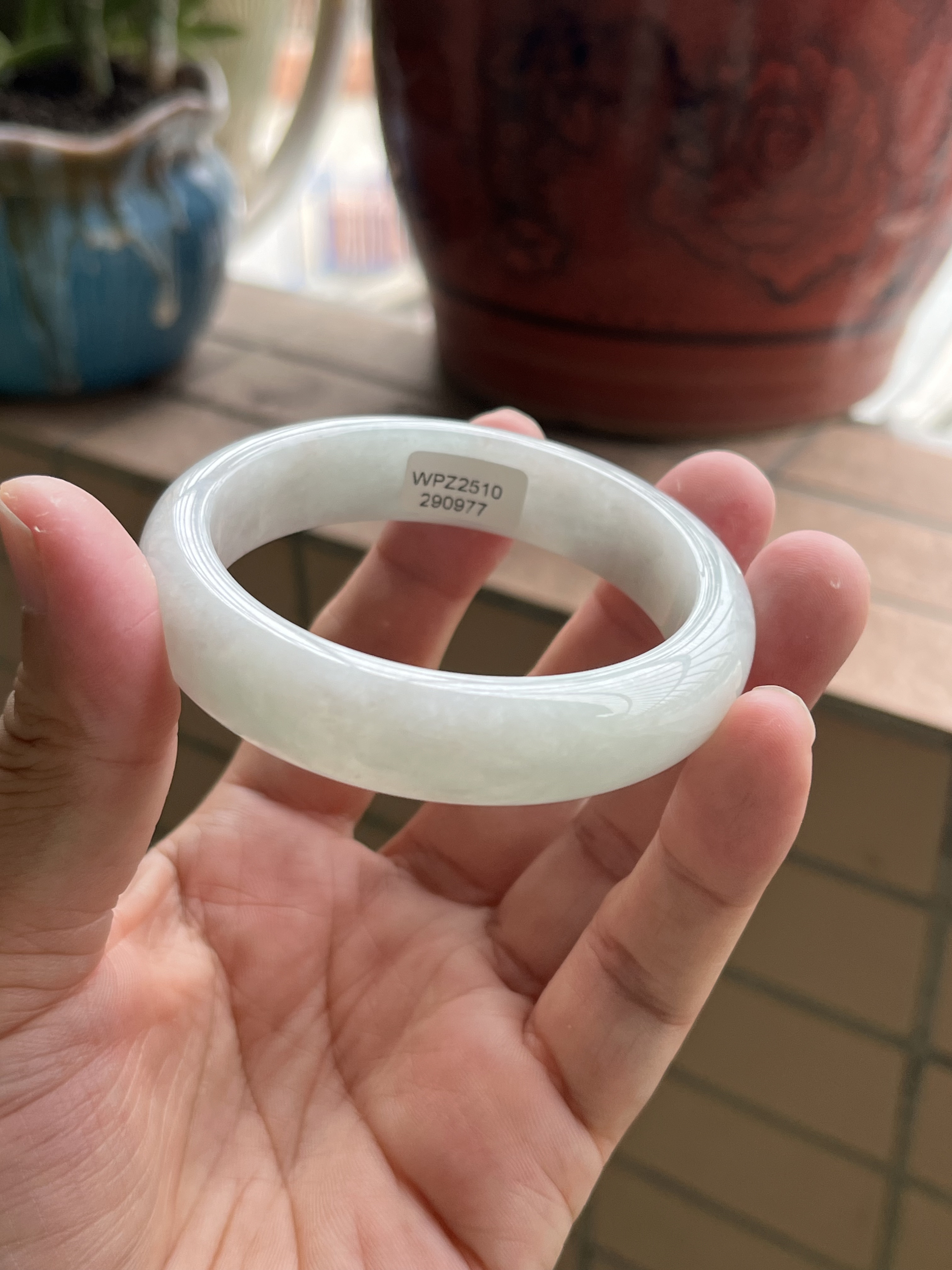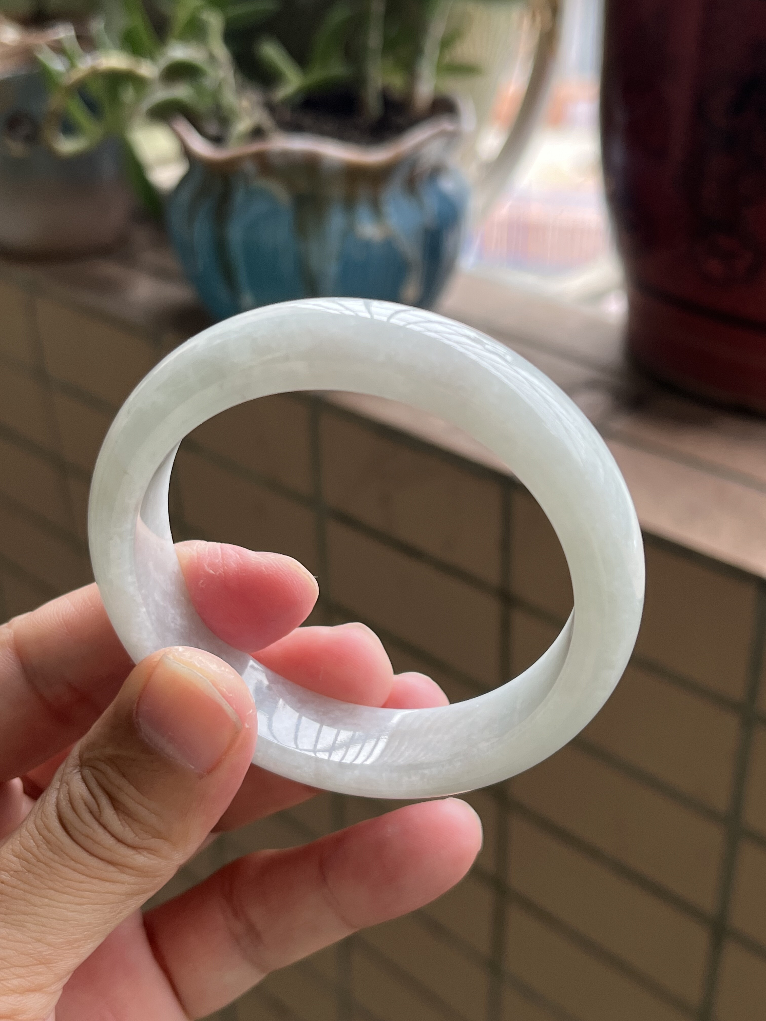 1029-0977天然A货翡翠55-13.6-8冰透水润无裂有一条顺纹