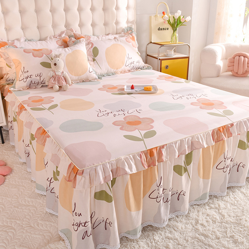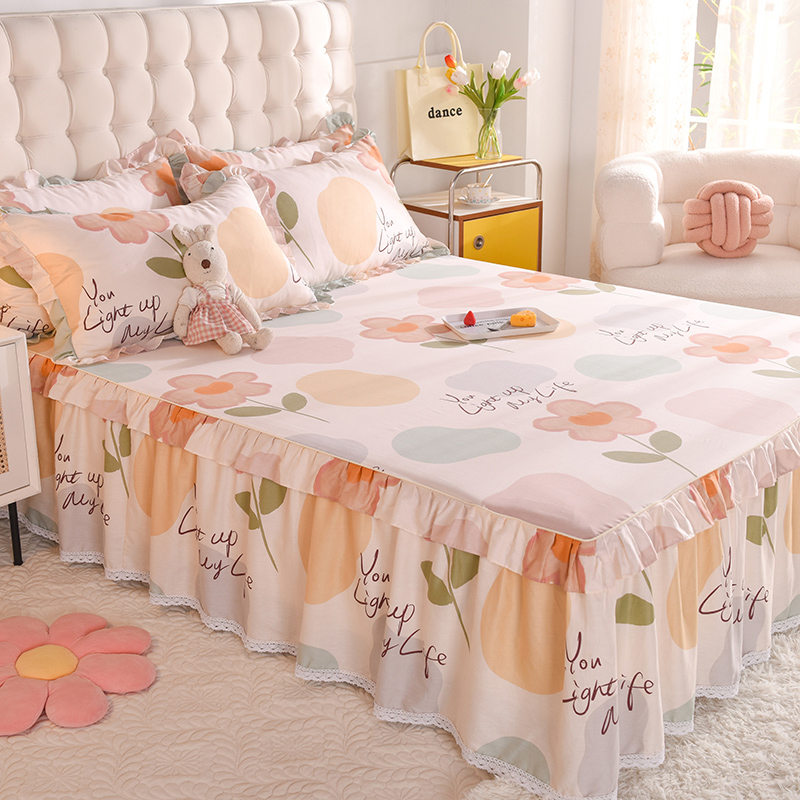 全棉床裙单件 花边防滑花卉简约风单人双人加厚床套1.8m床罩