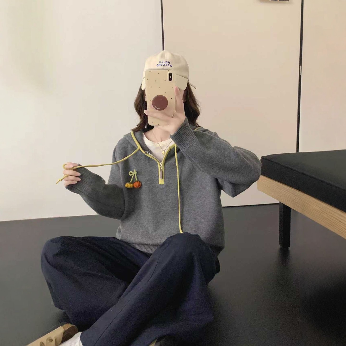 冬季半拉链连帽红色毛衣女2025新款爆款内搭可外穿针织打底衫秋冬
