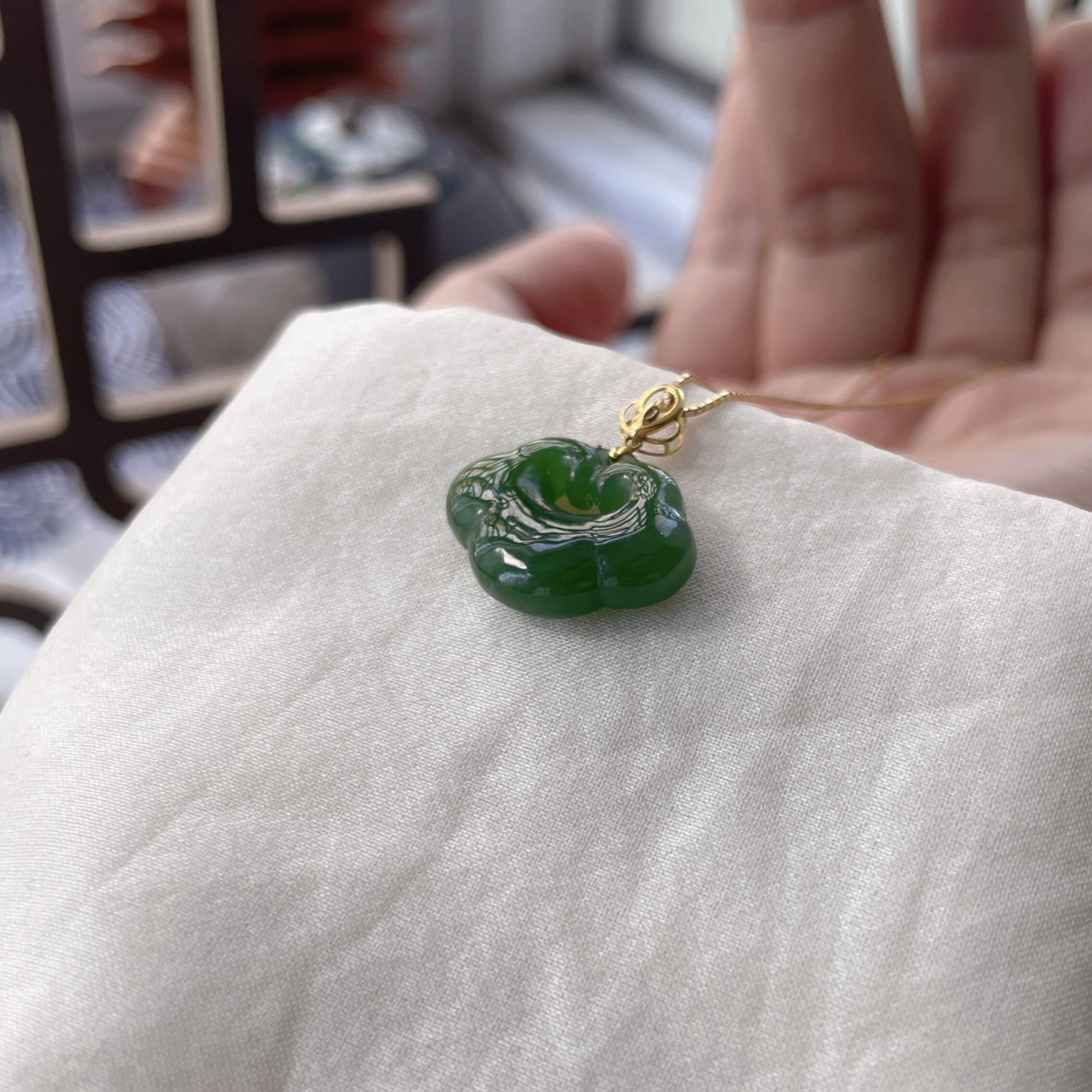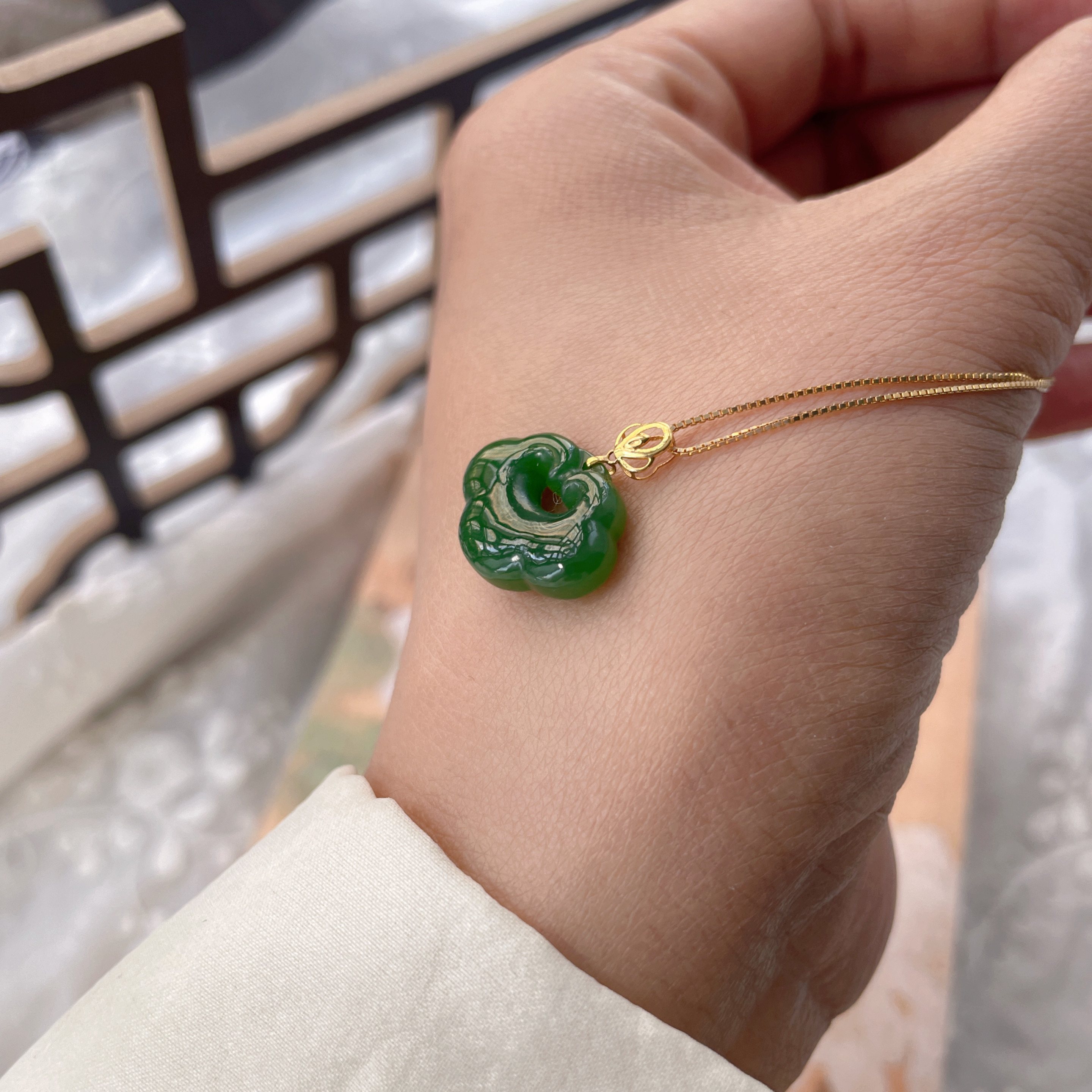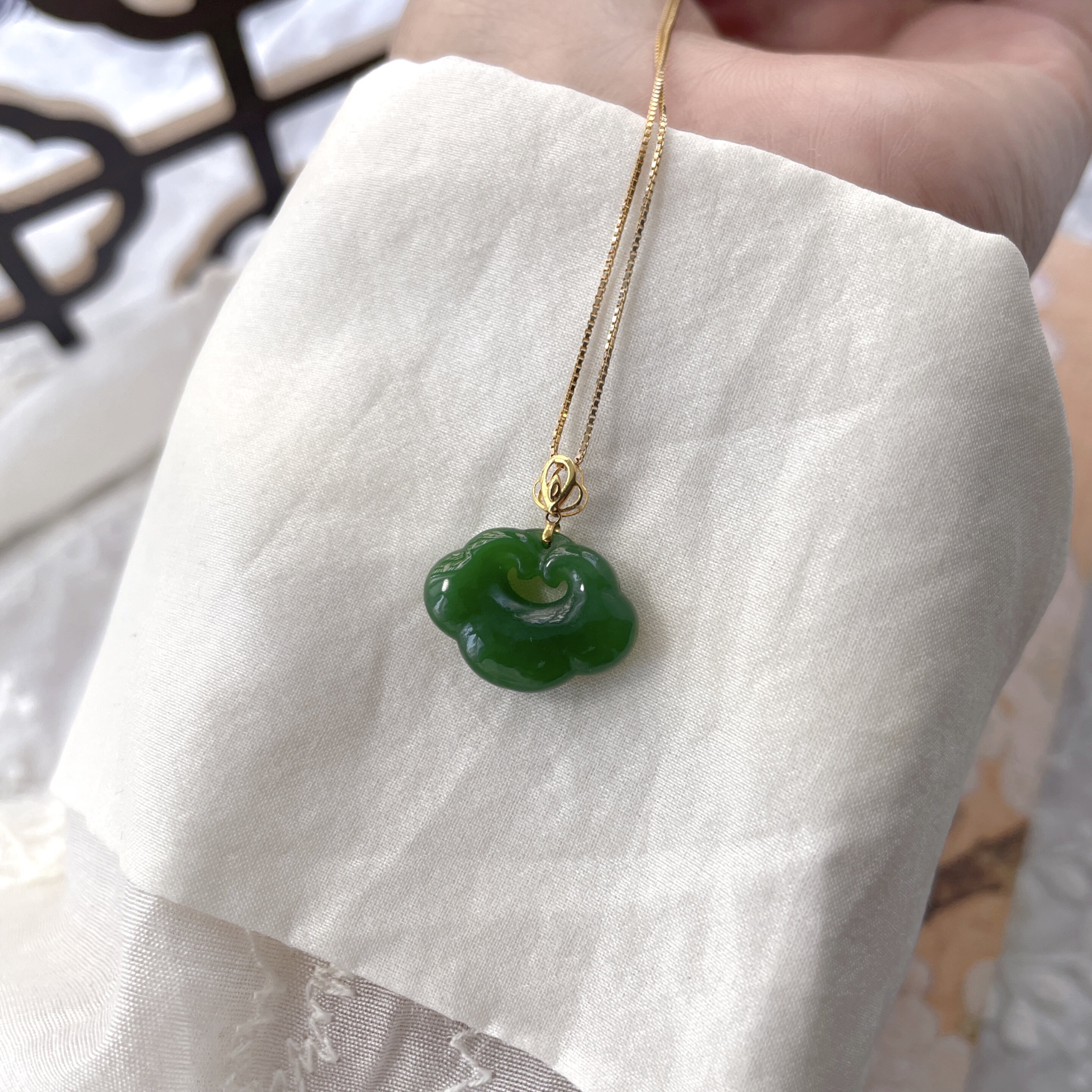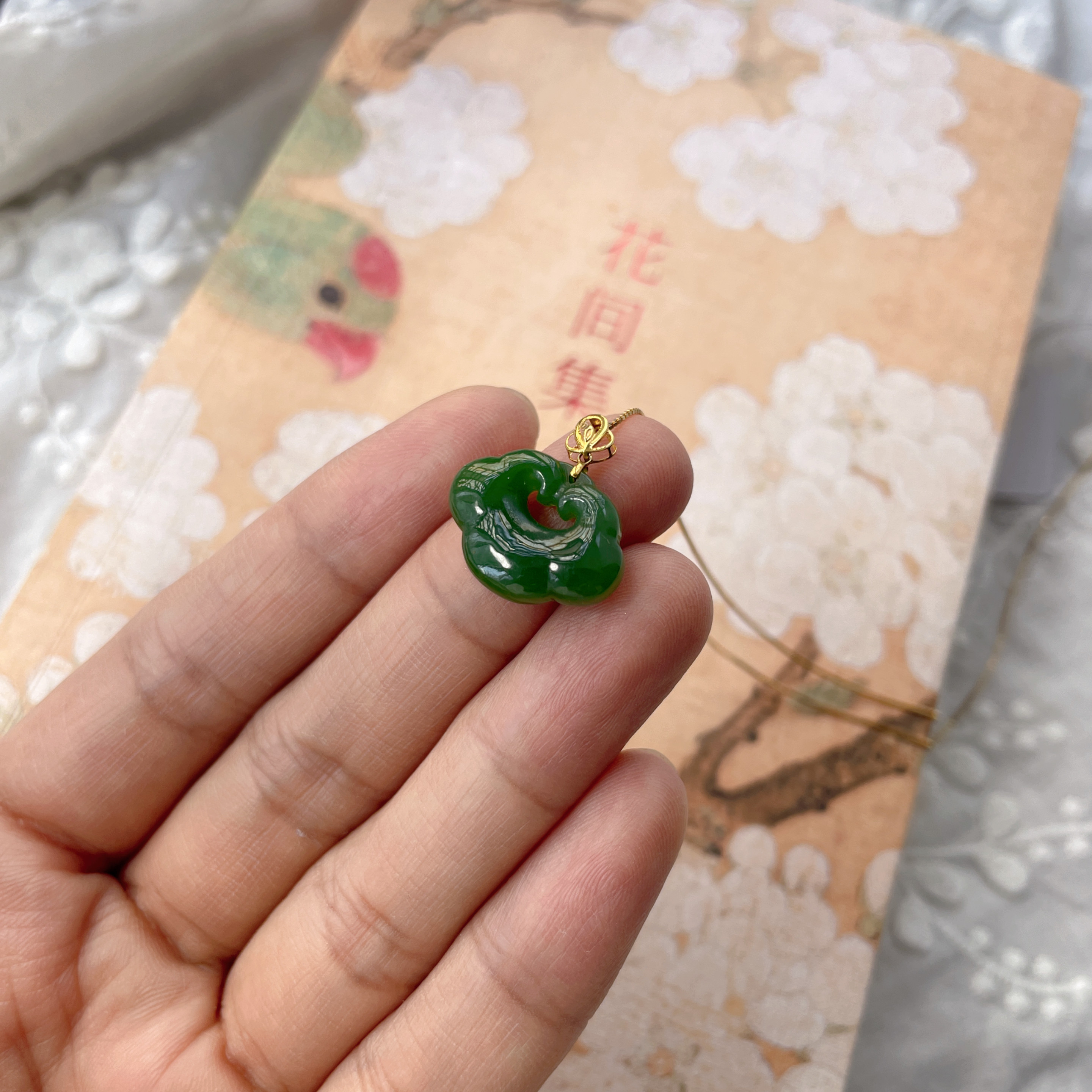 天然和田玉碧玉如意吊坠18k金镶嵌玉石迷你版挂件小号玉坠福利款