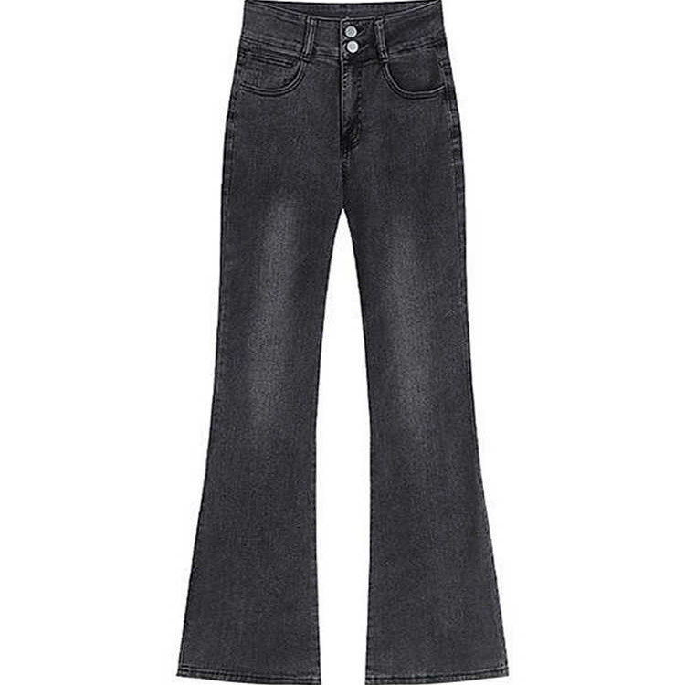 美式烟灰色牛仔裤女秋冬加绒新款胖mm高腰宽松显瘦直筒微喇拖地裤