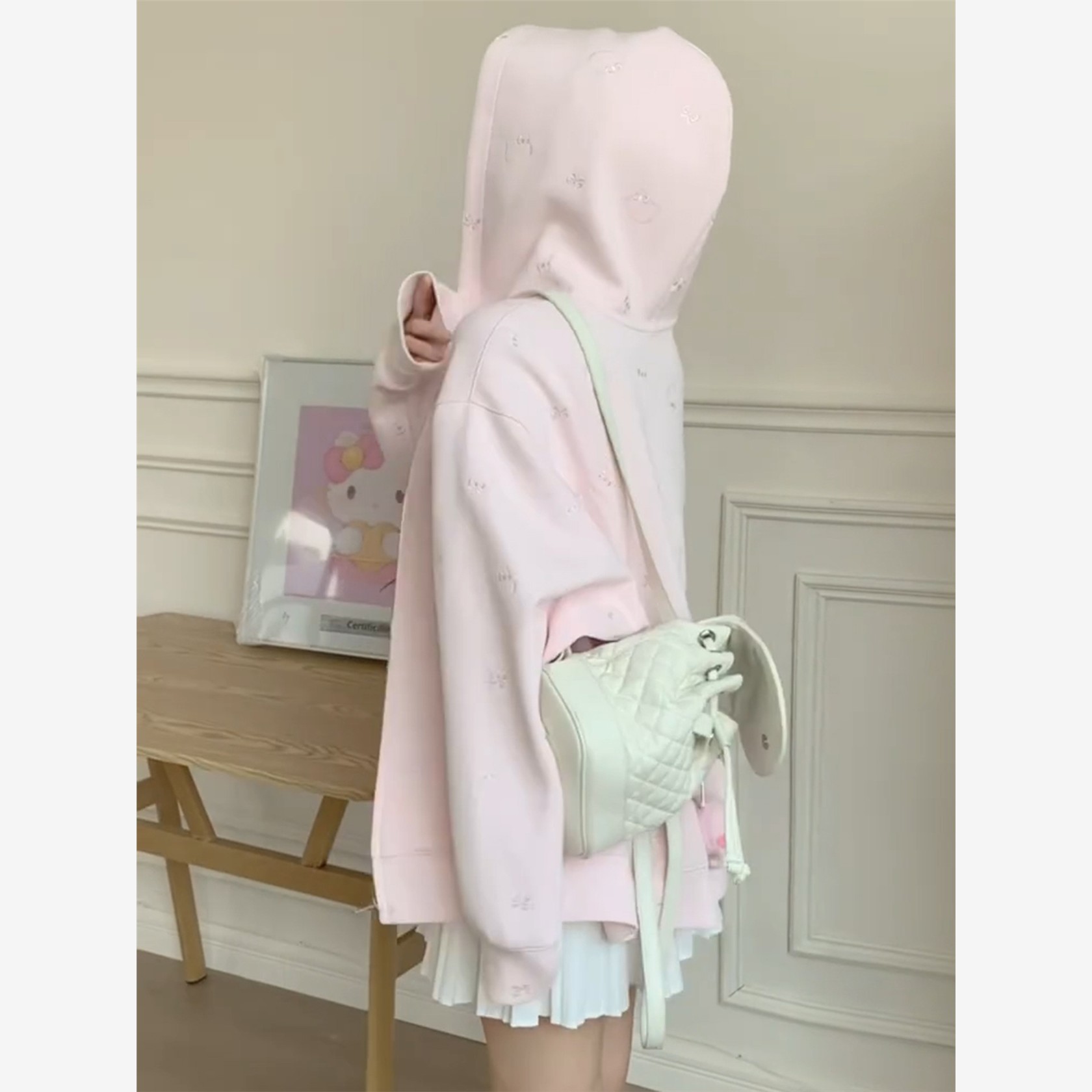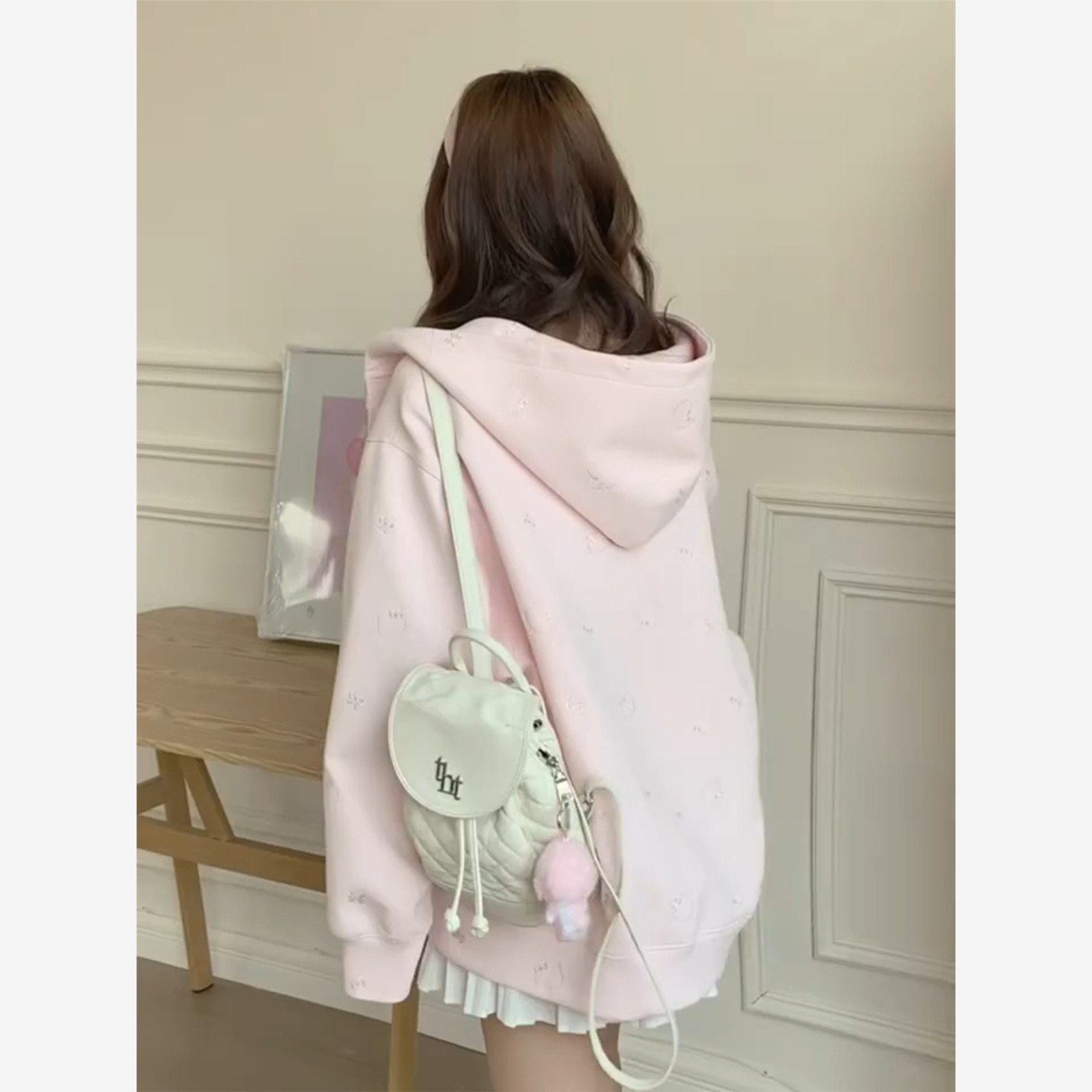 粉色刺绣连帽外套女春秋薄款2025新款韩版宽松上衣学院风开衫卫衣