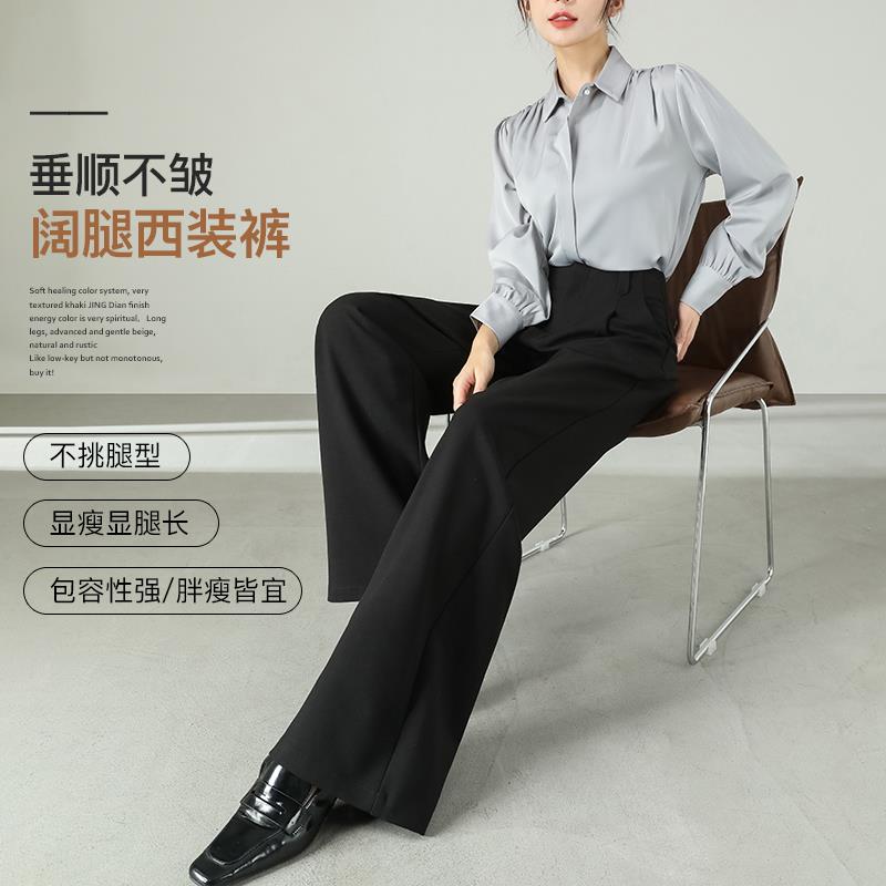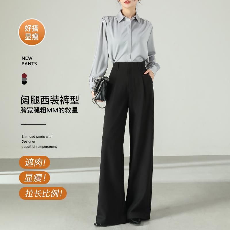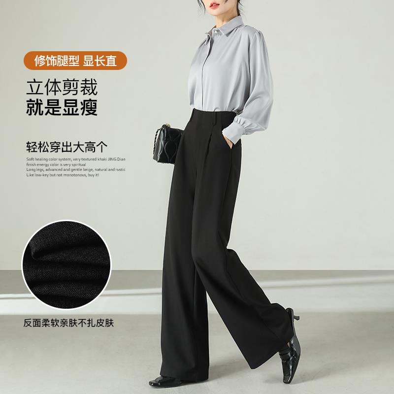 高级感垂感西装裤女夏季2025新款直筒宽松裤子高腰显瘦黑色宽裤