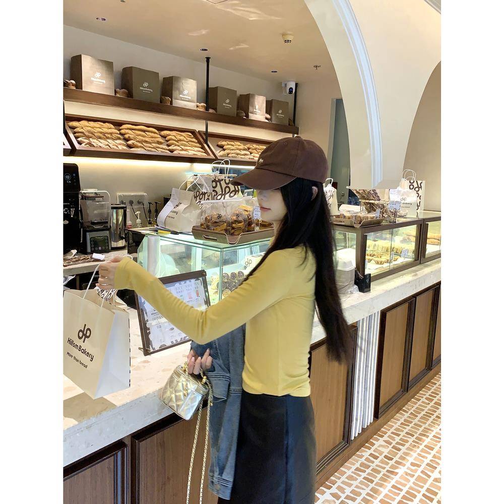切糕自制好看女早秋新款t恤小个子长袖修身紫色针织衫内搭上衣
