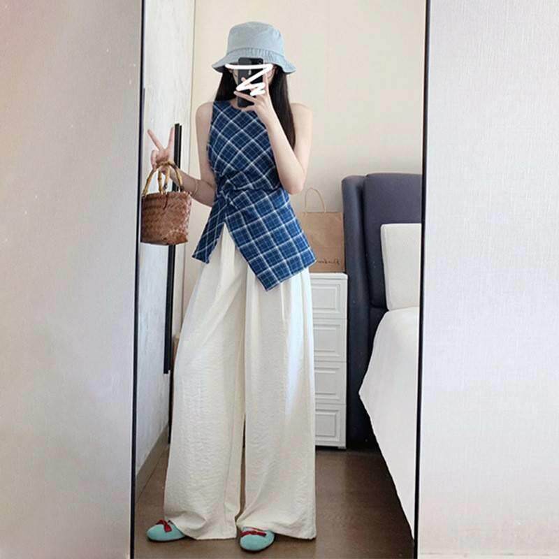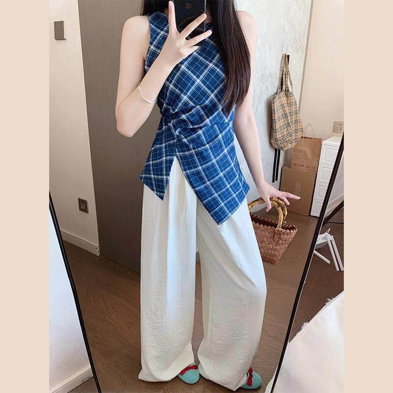 无开叉掐腰袖子上衣女夏格季2025新妹款别致辣背心短袖ltao8193T