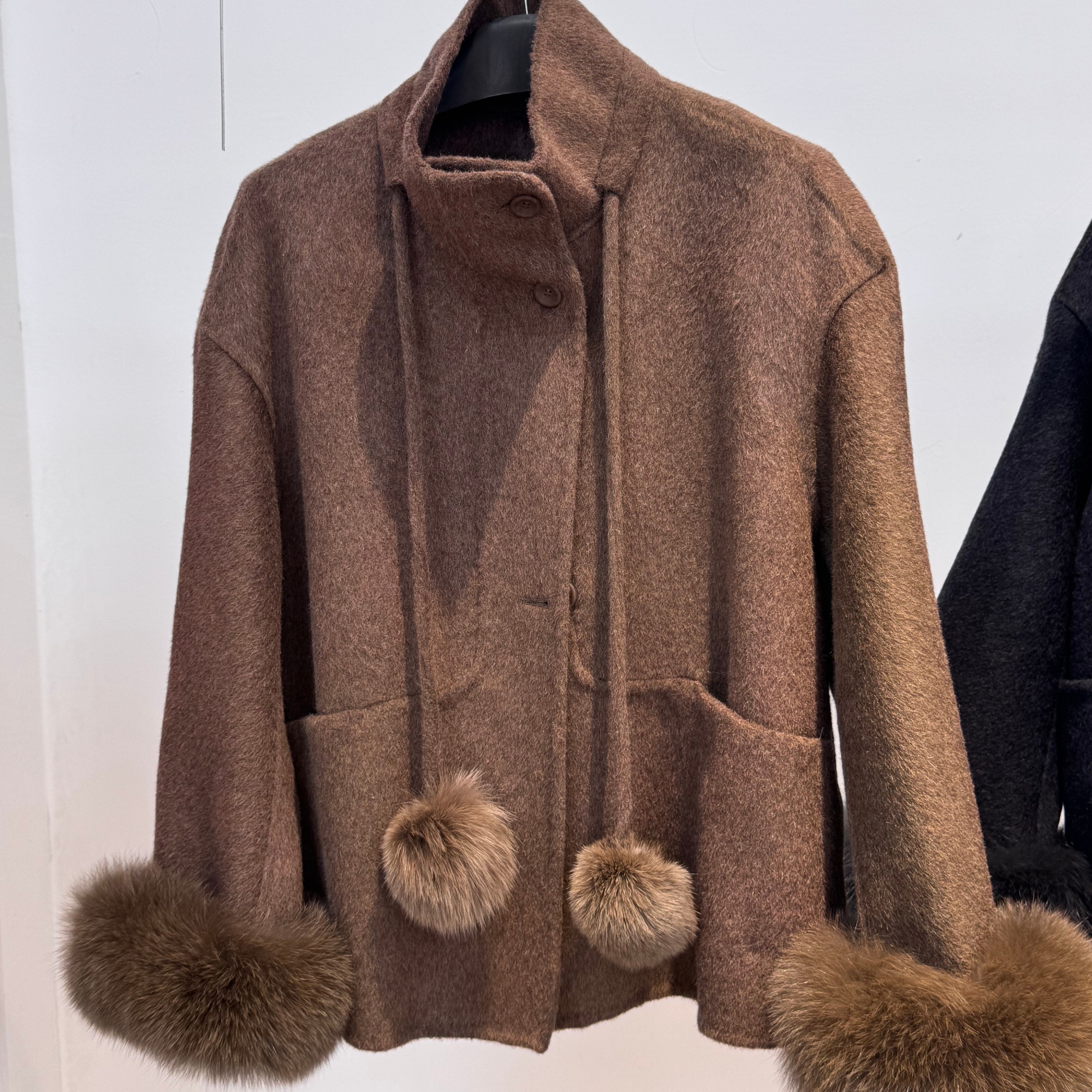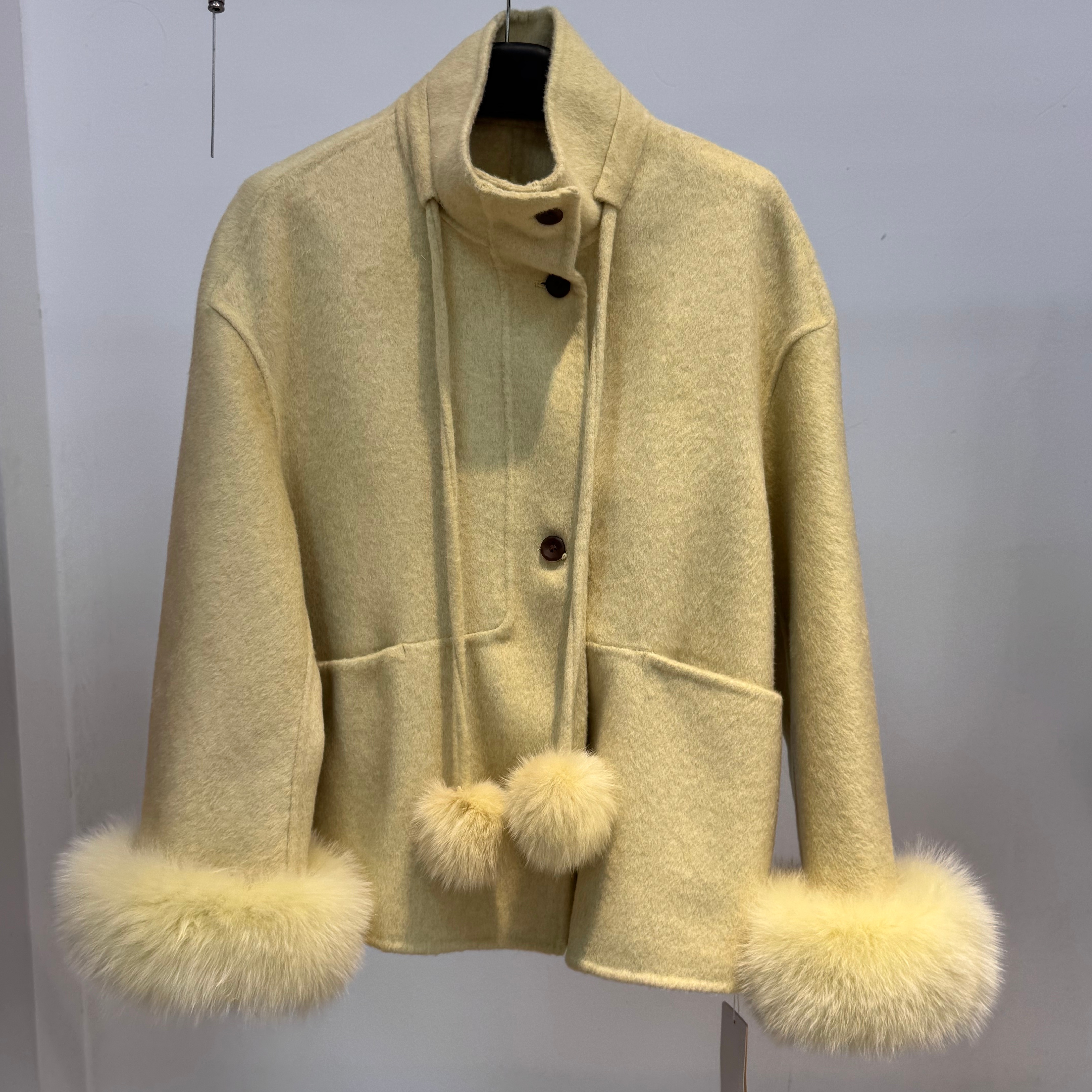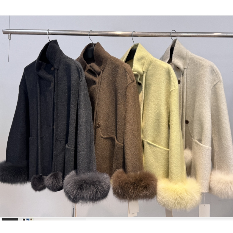 【蜜蜂欢乐社】秋冬新款双面呢毛毛袖女短款宽松羊毛外套902